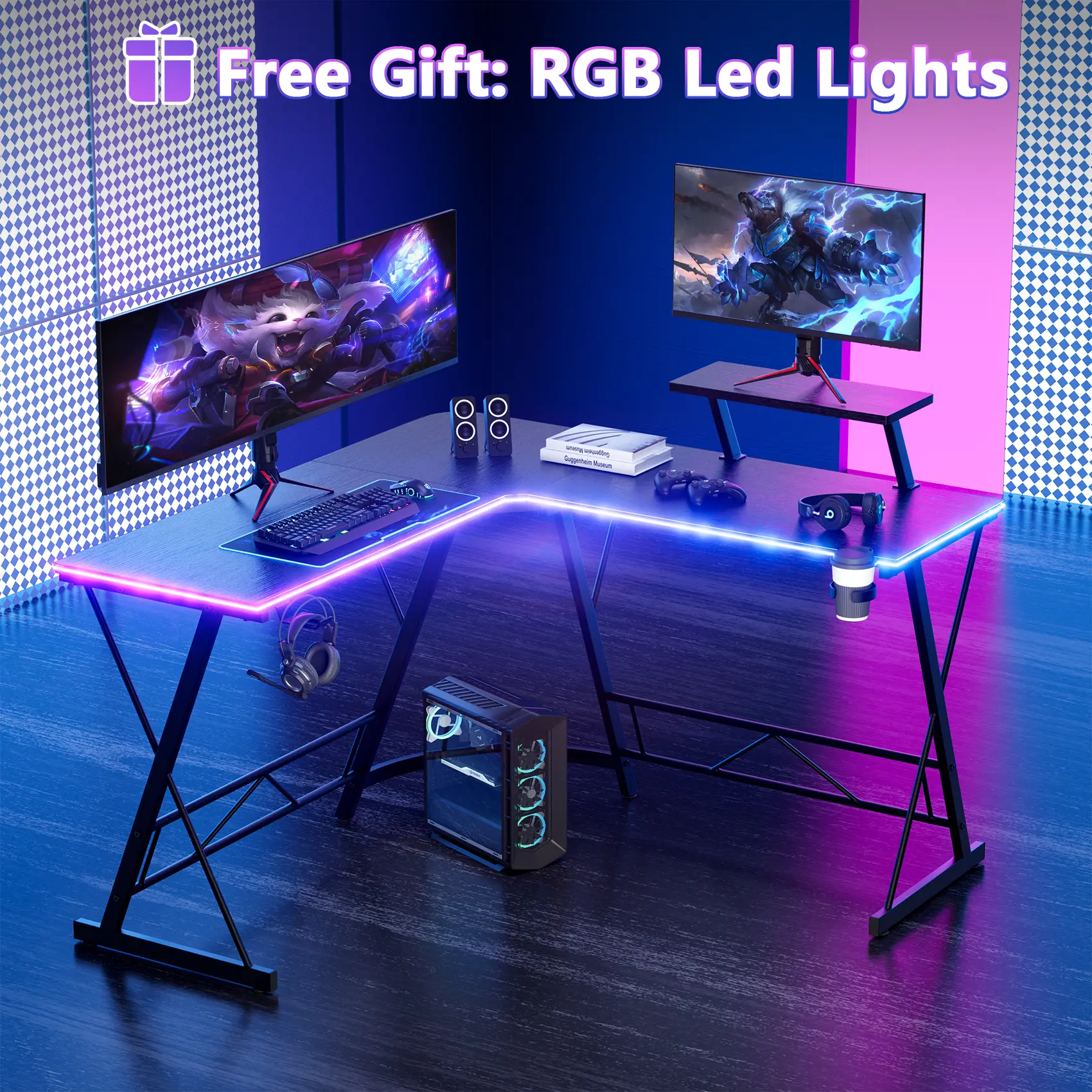 ·Durable & Sturdy Construction: Constructed with thicken metal frame and P2 MDF board, this upgraded computer desk is much more durable and sturdier with a better load-capacity. The L shaped desk desktop is smooth & exquisite, and it won't be scratched even if you move mouse quickly. Ultra-sturdy X-shaped legs are strong enough to support up to 350lbs of weight without wobbling.