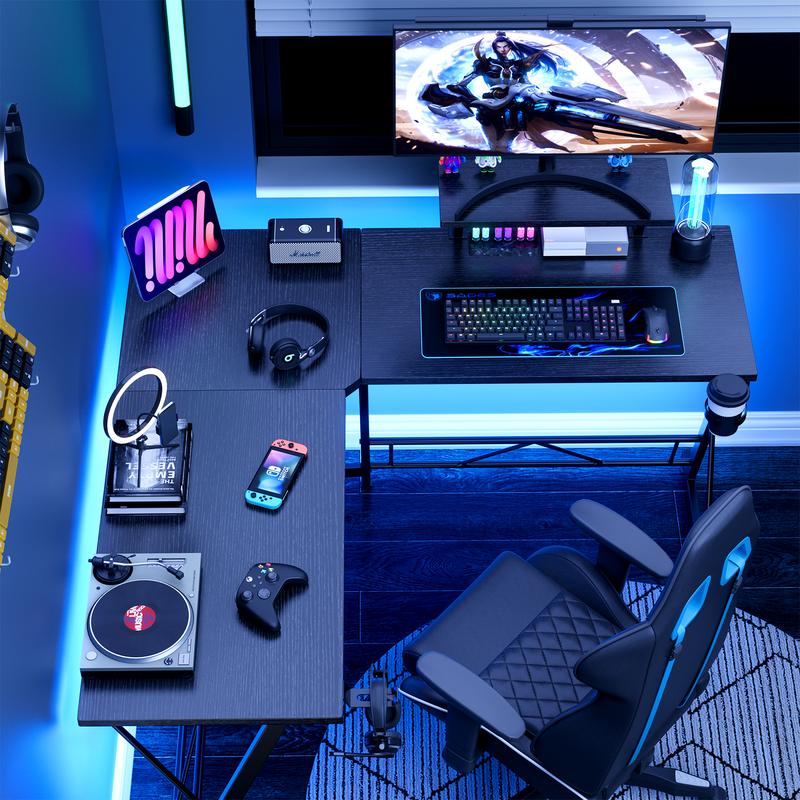 ·Large Desktop & Ample Leg Room: This corner desk with 50.8"L x 18.2"W double black-colored desktops ensure your conversions around with ease while working/gaming. This corner gaming desk is up to 29.5 "D, with the optimal legroom, convenient for sitting and storage, which is also very friendly to tall people.