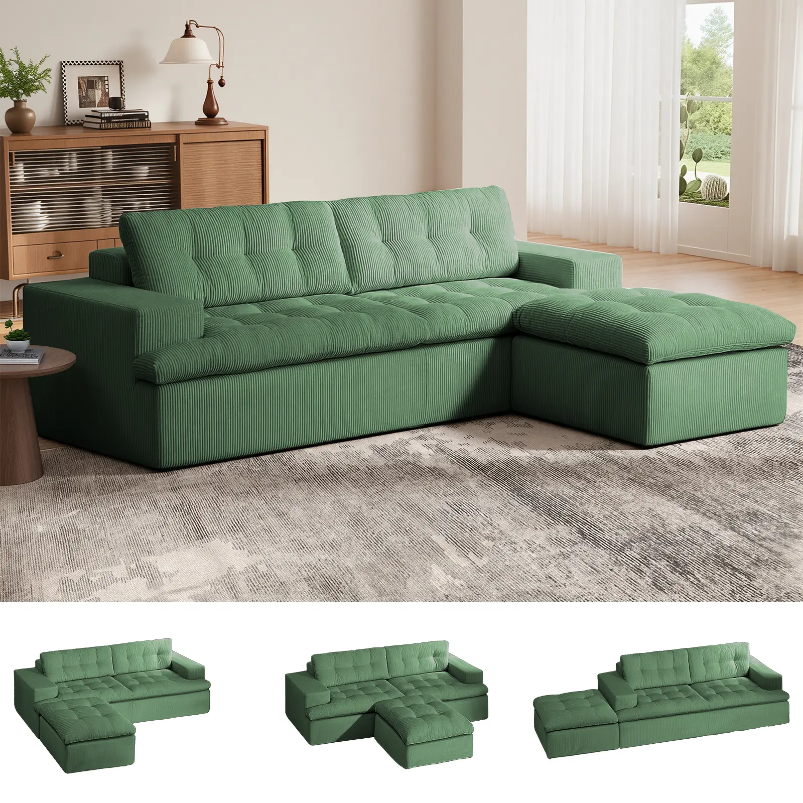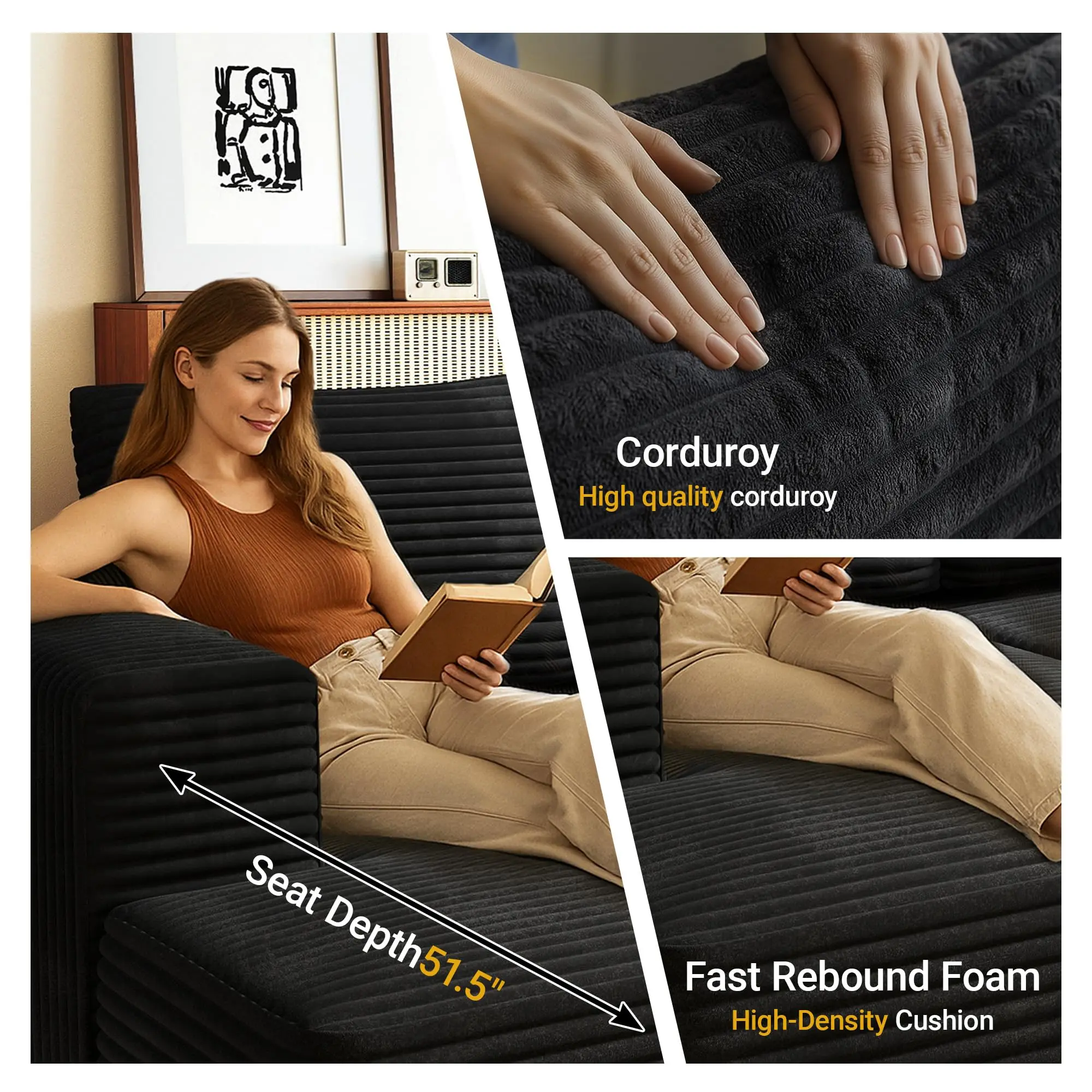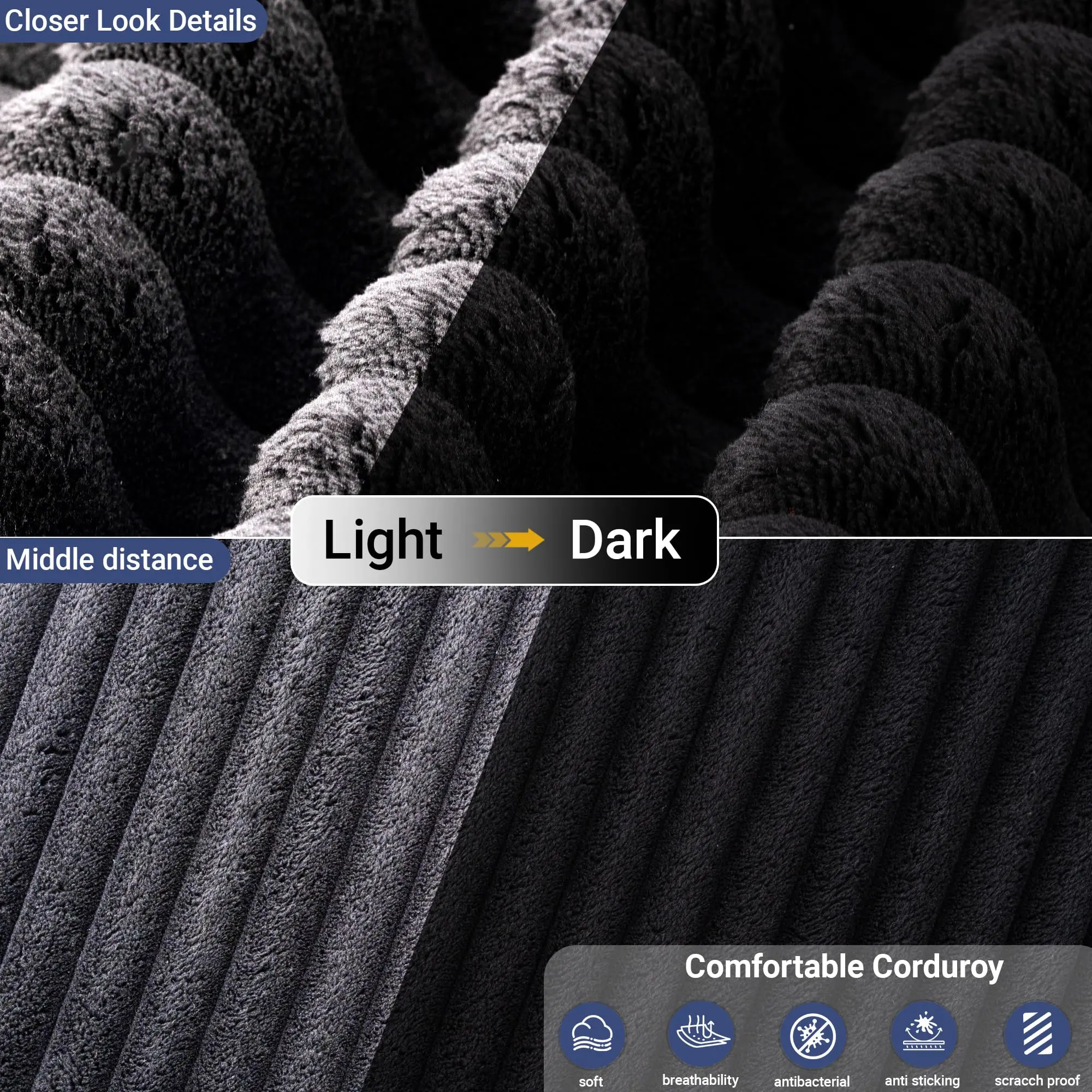 Wrapped in ultra-soft, breathable corduroy, this couch is warm in winter and cool in summer. It’s 100% pet-friendly – scratch-resistant, easy to clean, and gentle on your furry friends’ paws, making it ideal for family homes. 🐾