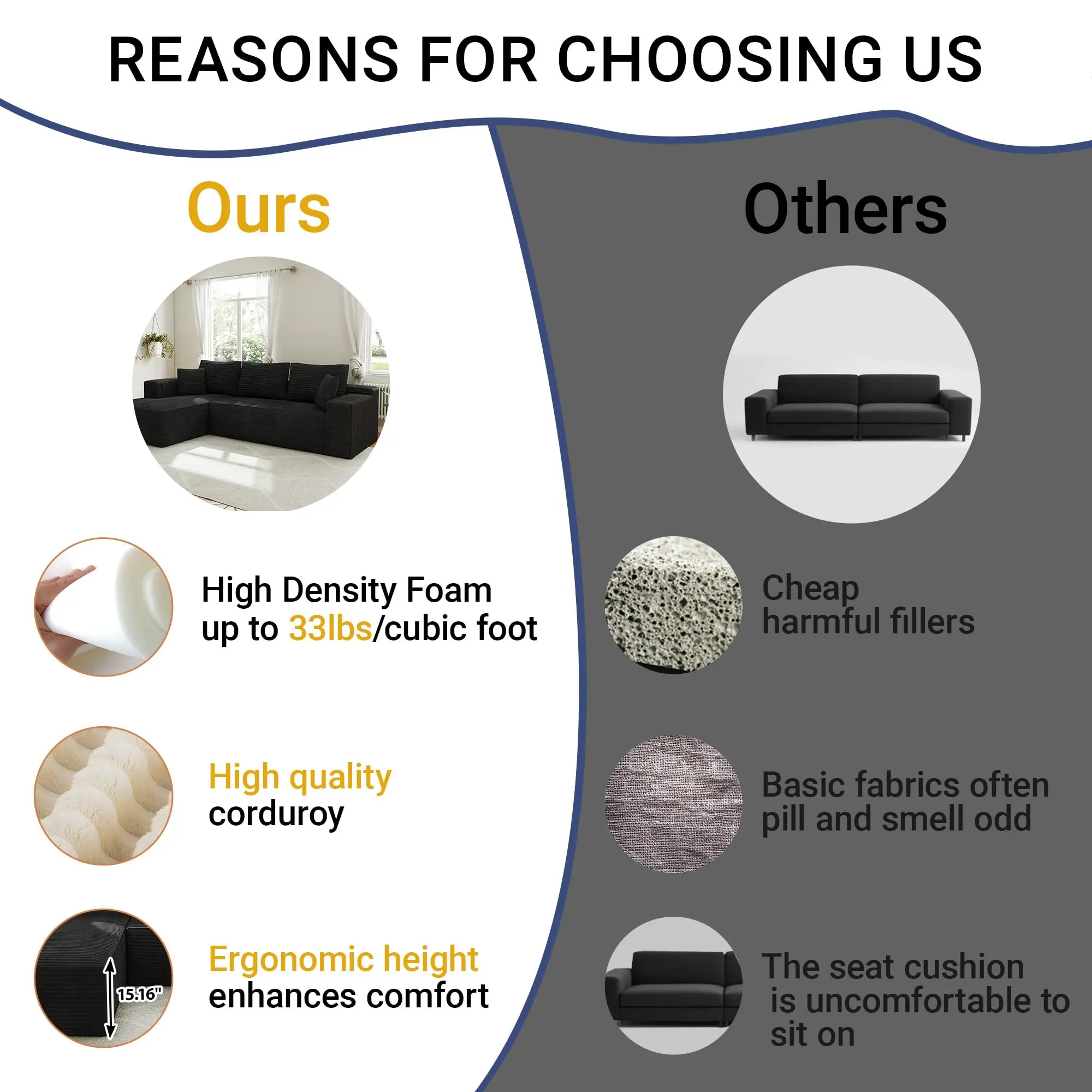 Engineered with dual-support foam technology: a cooling gel layer prevents overheating during long sits, while a high-resilience sponge core ensures lasting support and no sagging. Experience hotel-level comfort right in your living room! 🛌