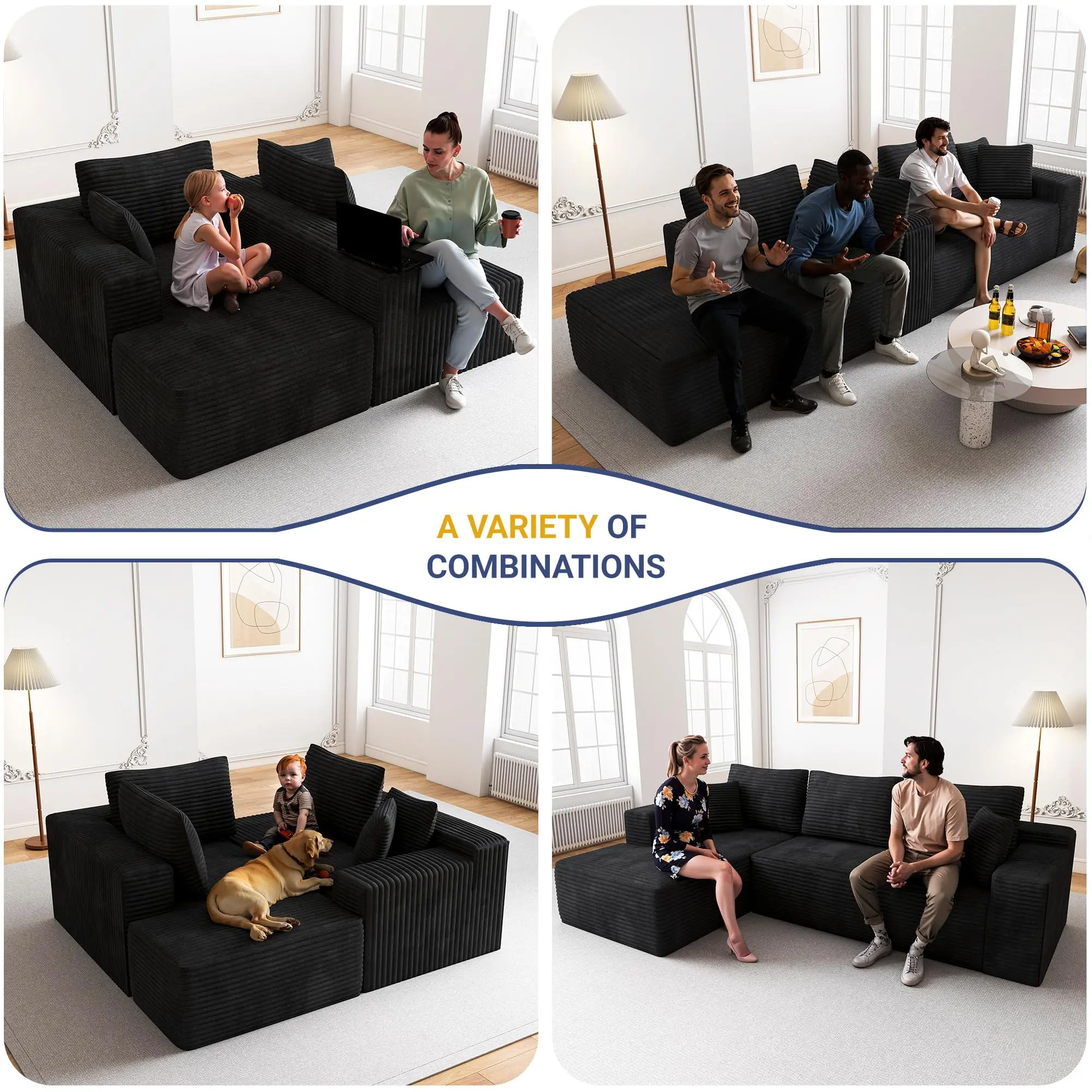 Customize the modular design to fit your space perfectly! Switch between sleeping, relaxing, gaming, or family play modes in seconds. The 106.3" perfect size fits most living rooms, apartments, or game rooms effortlessly. 🏠