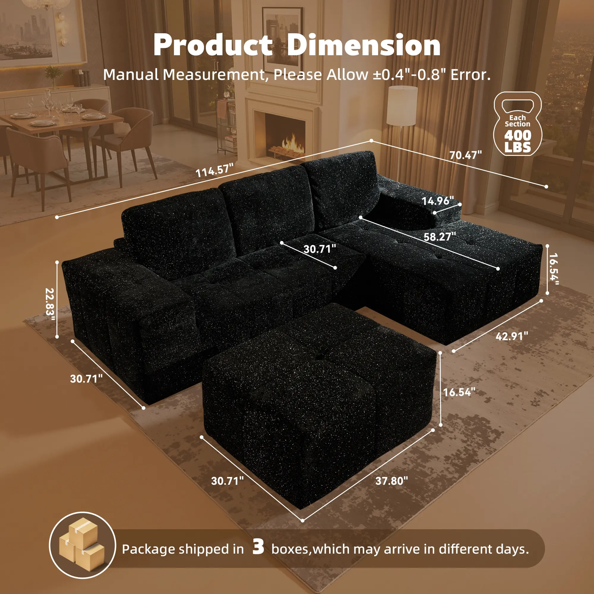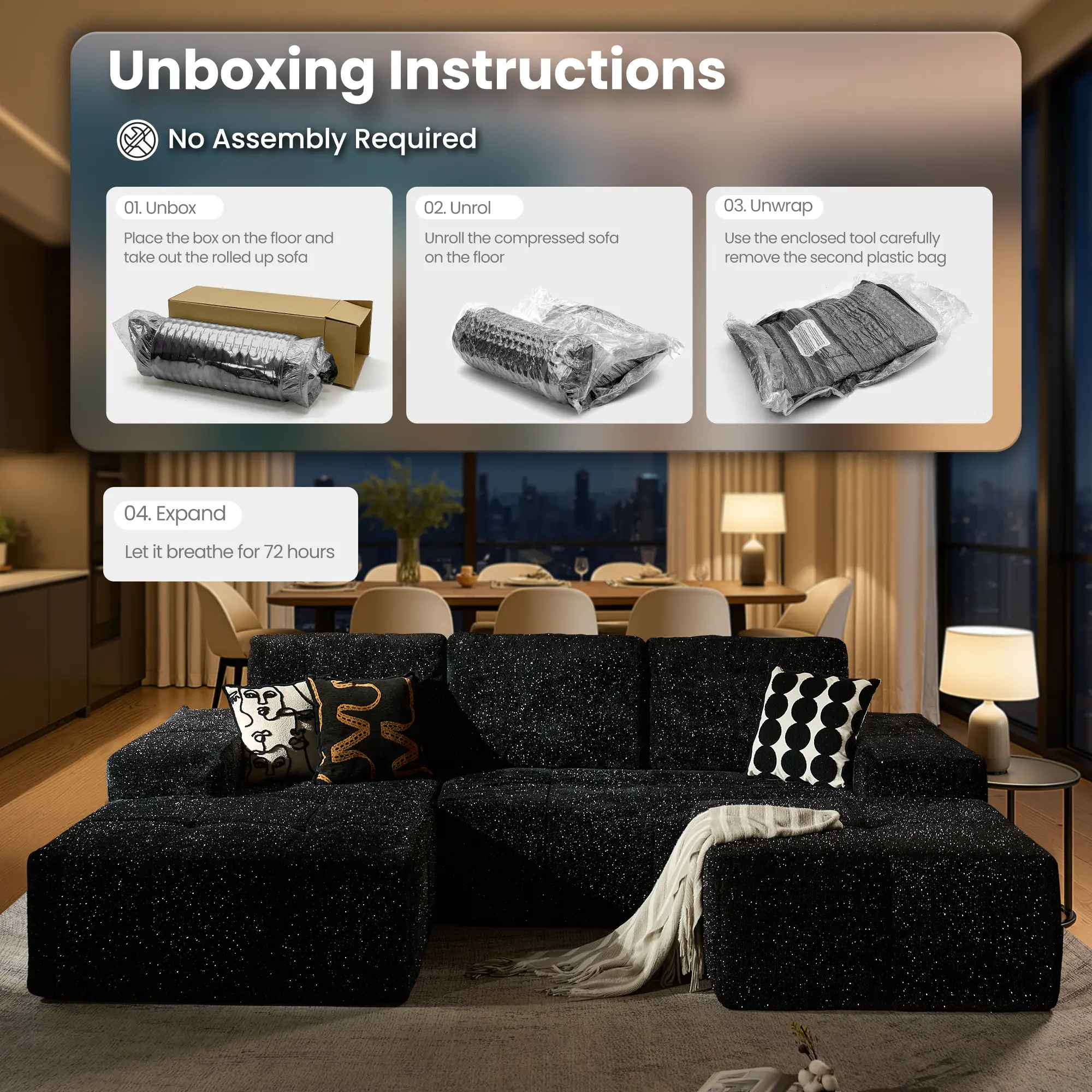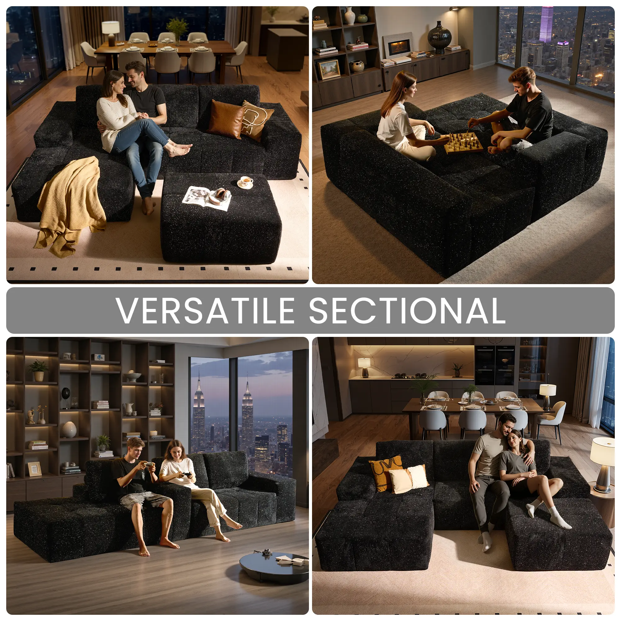 ·Comfy Chaise Couch:Bask in unparalleled luxury with our interchangeable sofa collection, which embodies a spacious, cloud-like seating sensation. Revel in supreme ease with our couch with 51" lounge chaise, meticulously crafted from high resilience foam architecture and coil spring reinforcement.