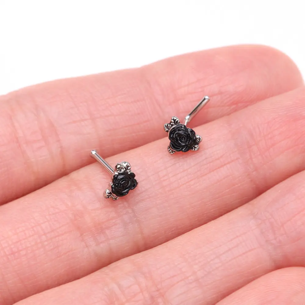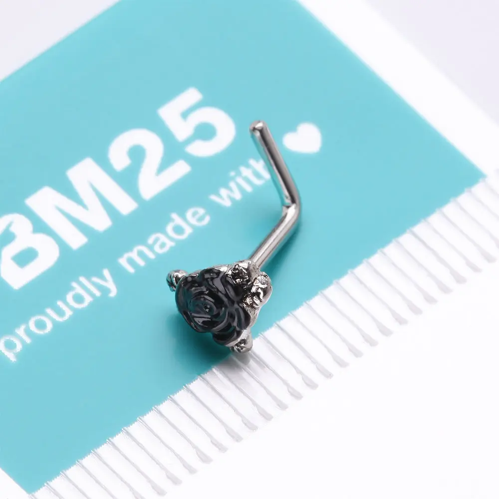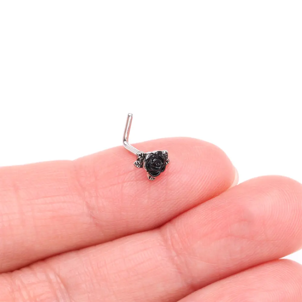 Vintage Gothic Black Rose L-Shaped Nose Ring