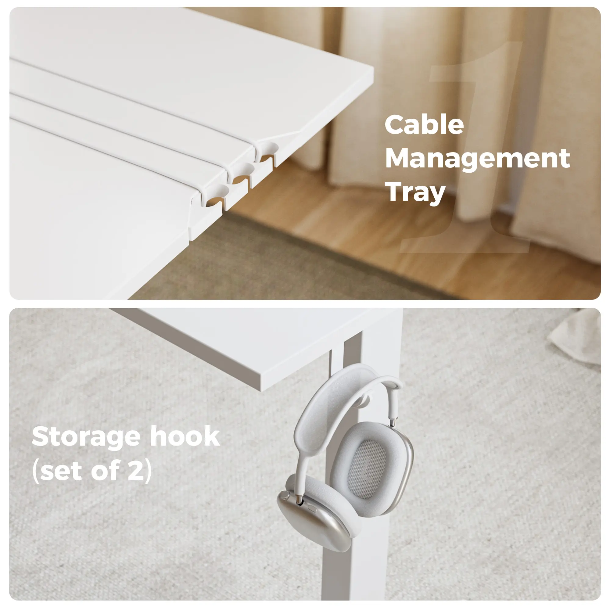 ·Storage: Two side hooks for headphones, backpacks, or other accessories
