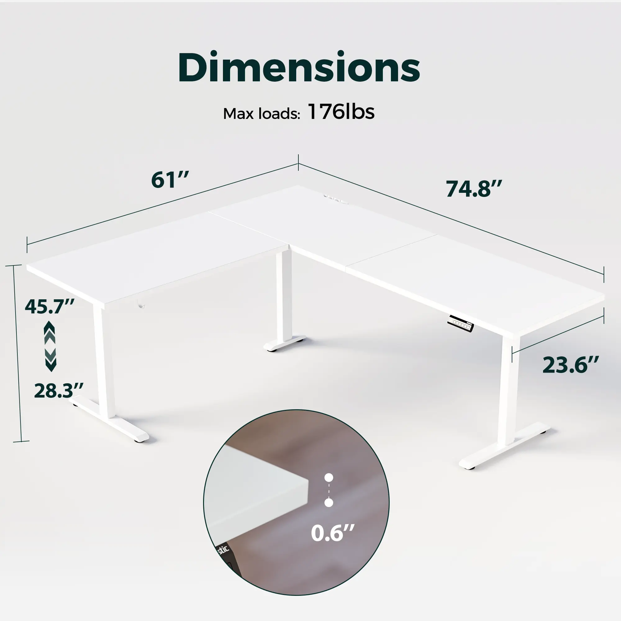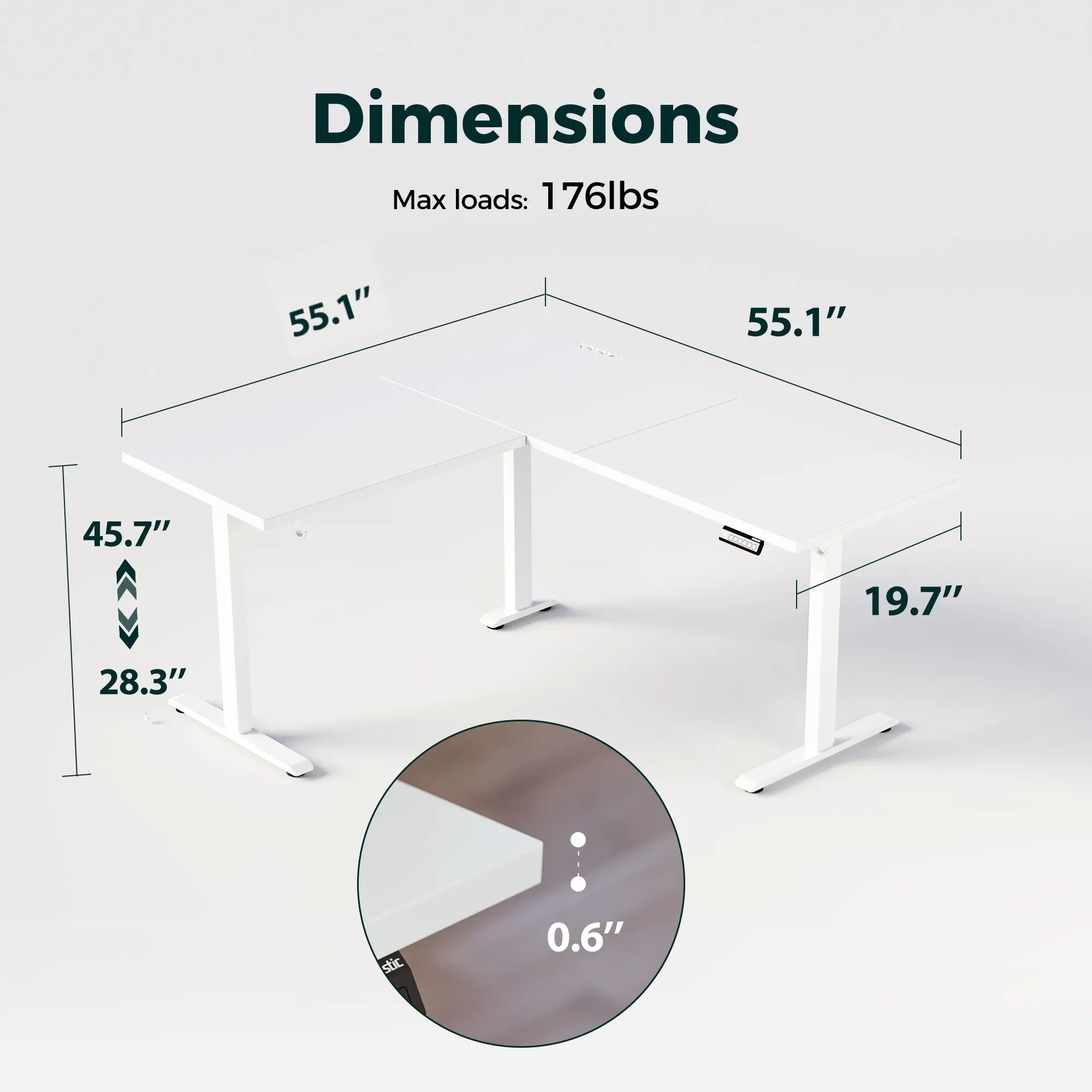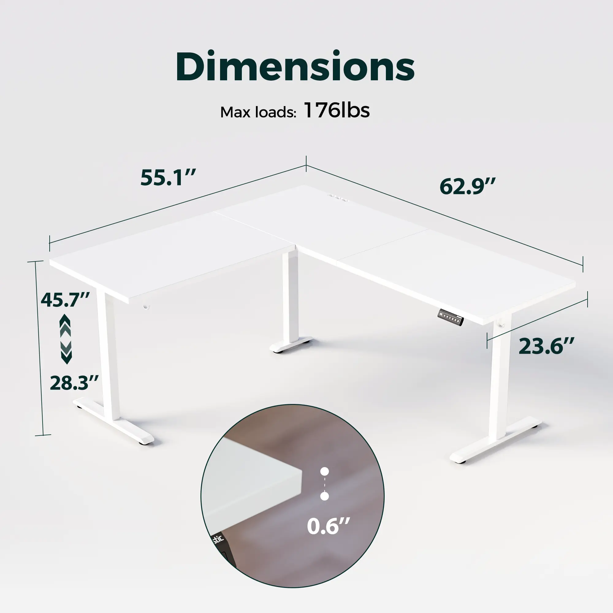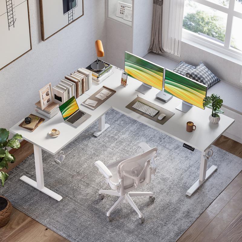 Conclusion: This L-shaped standing desk offers a spacious workspace, smooth electric height adjustment, ergonomic design, organized cable management, and sturdy construction. It is perfect for home office or corner workstation use, providing a comfortable and efficient working environment.