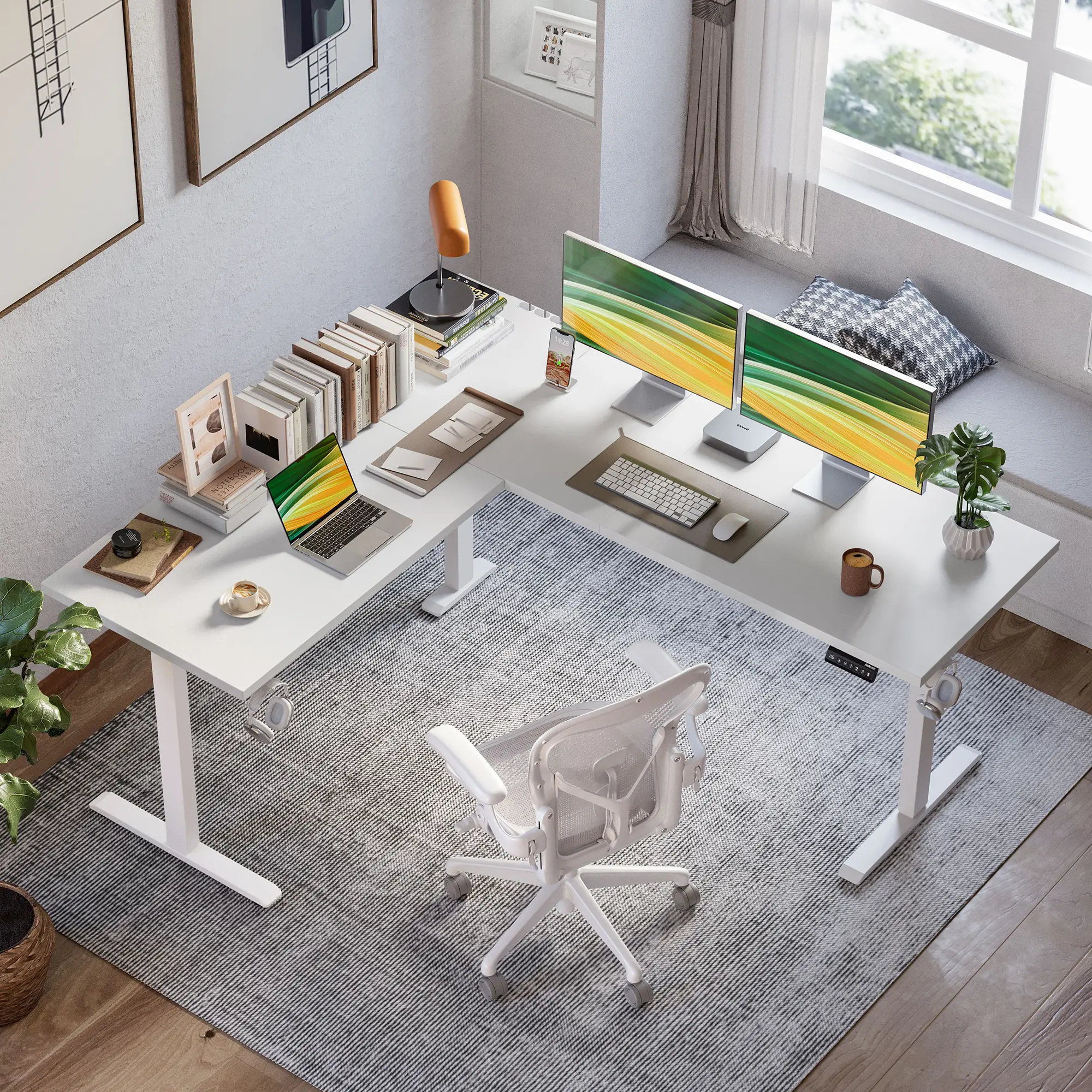 Spacious L-Shaped Workspace: