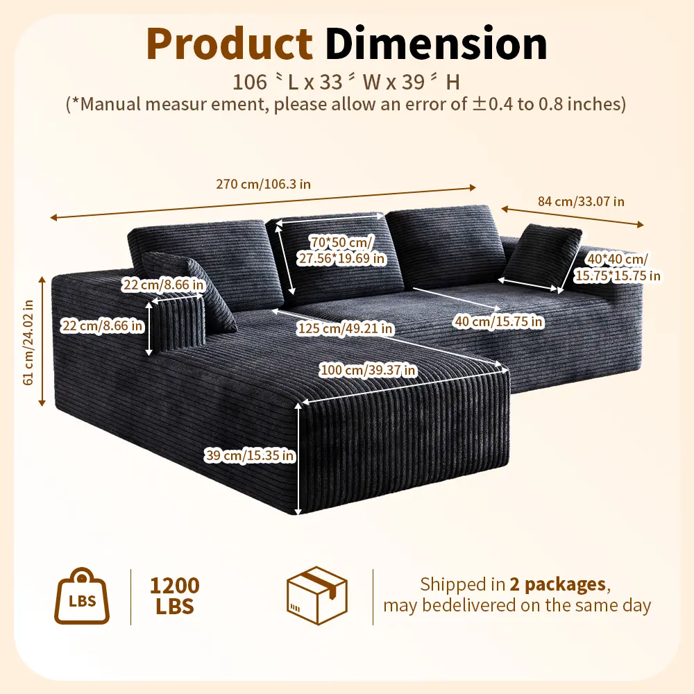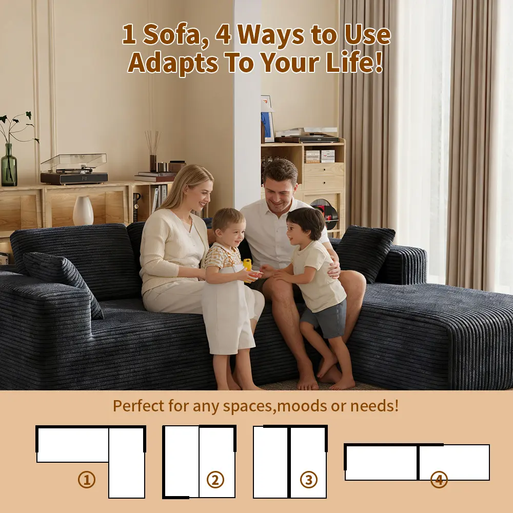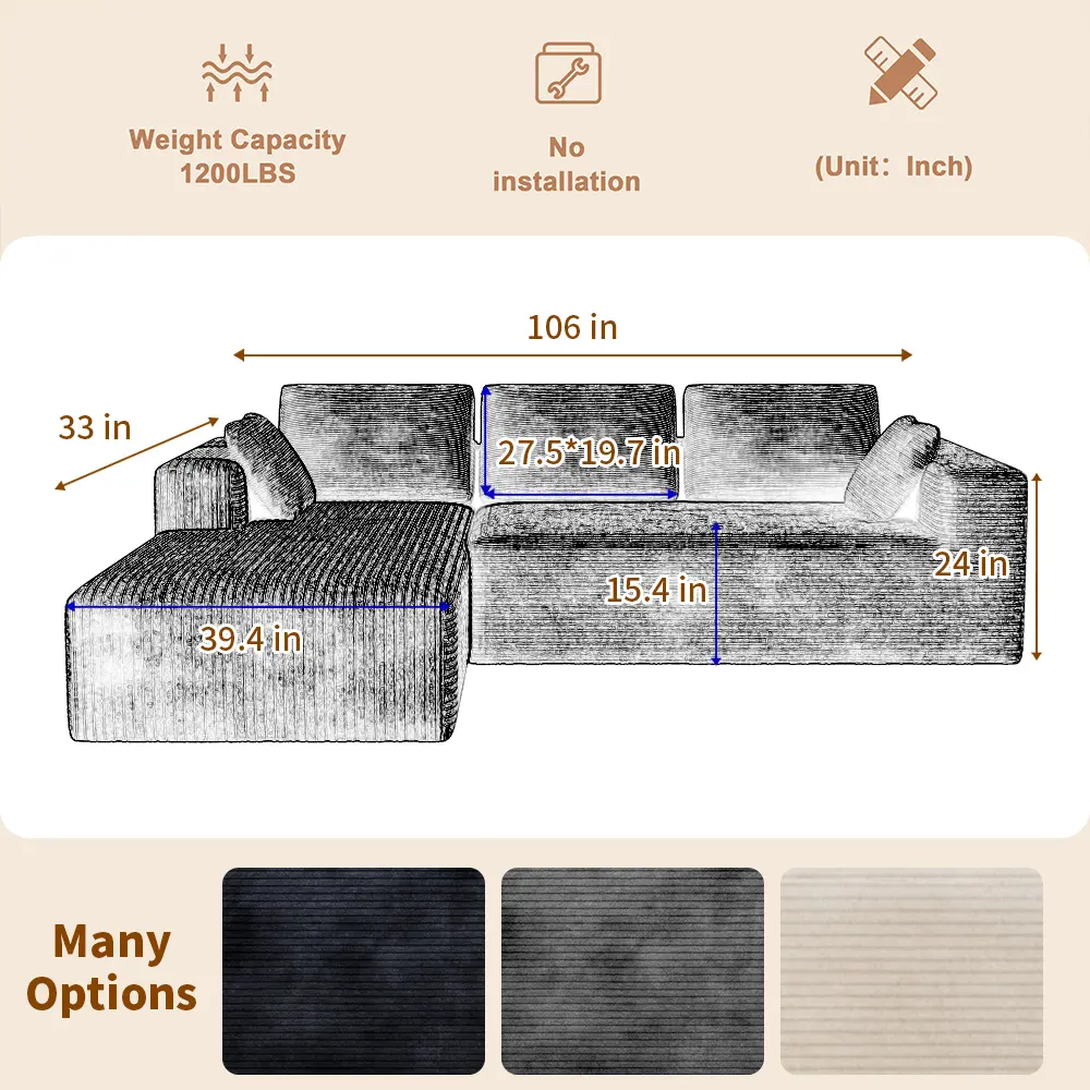 ·Design: L-shaped with a chaise for added comfort.