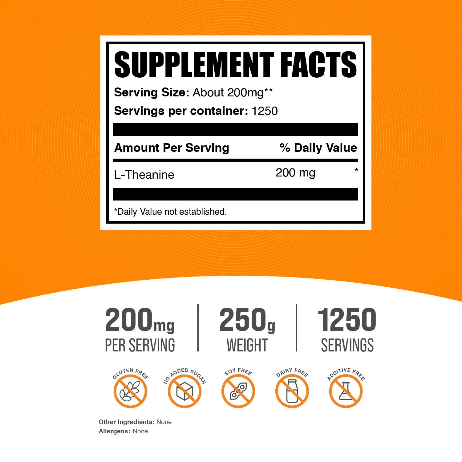 Free of: Gluten, Added Sugar, Soy, Dairy, Additives