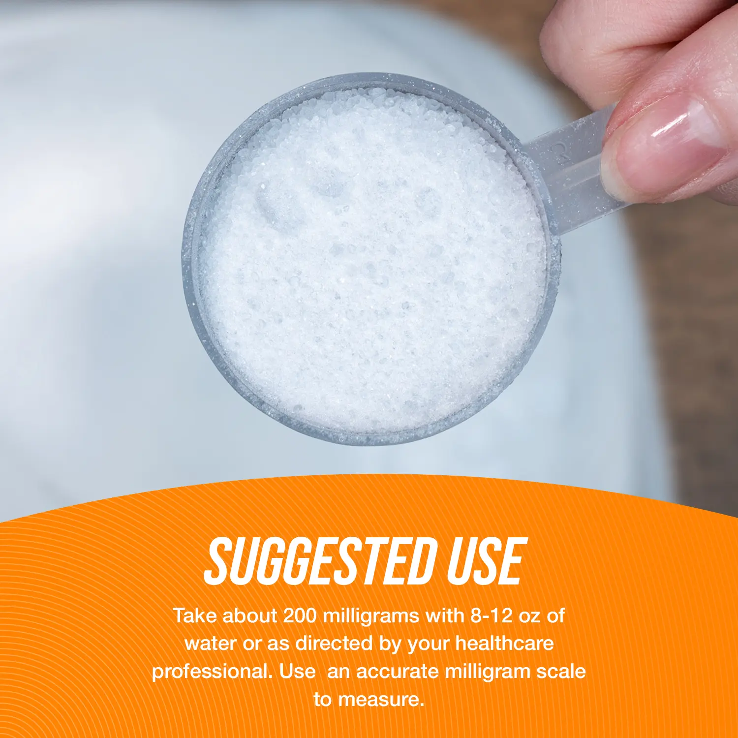 Suggested Use: Take about 200 milligrams with 8-12 oz of water or as directed by your healthcare professional. Use an accurate milligram scale to measure.