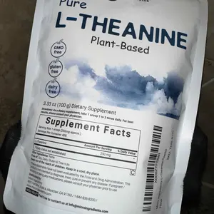 So I’m not sure but my L-Theanine has the ingredients on the front not and doesn’t look the same as the one in the pic and also when opened it was less than half a bag of powder . I get contents can settle during shipping but I don’t feel like what I got was worth what i paid. Prob a fake.