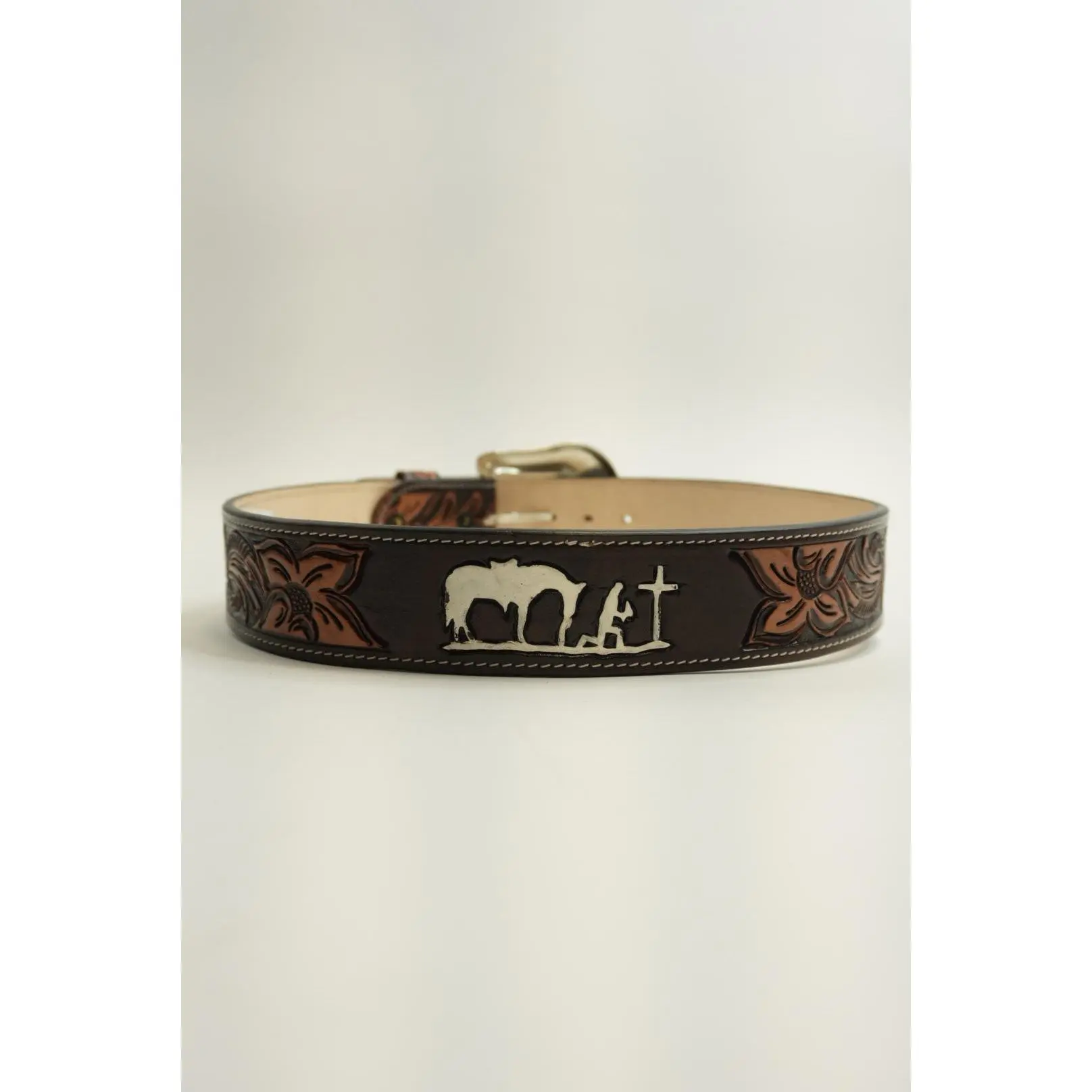 LA HERRADURA BELT 2 INCH BROWN WITH FLOWERS LH NEW DESIGN