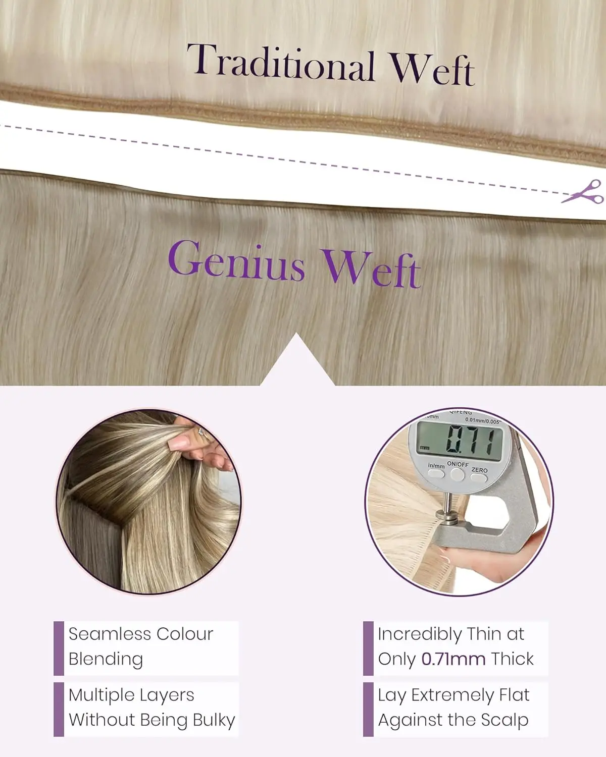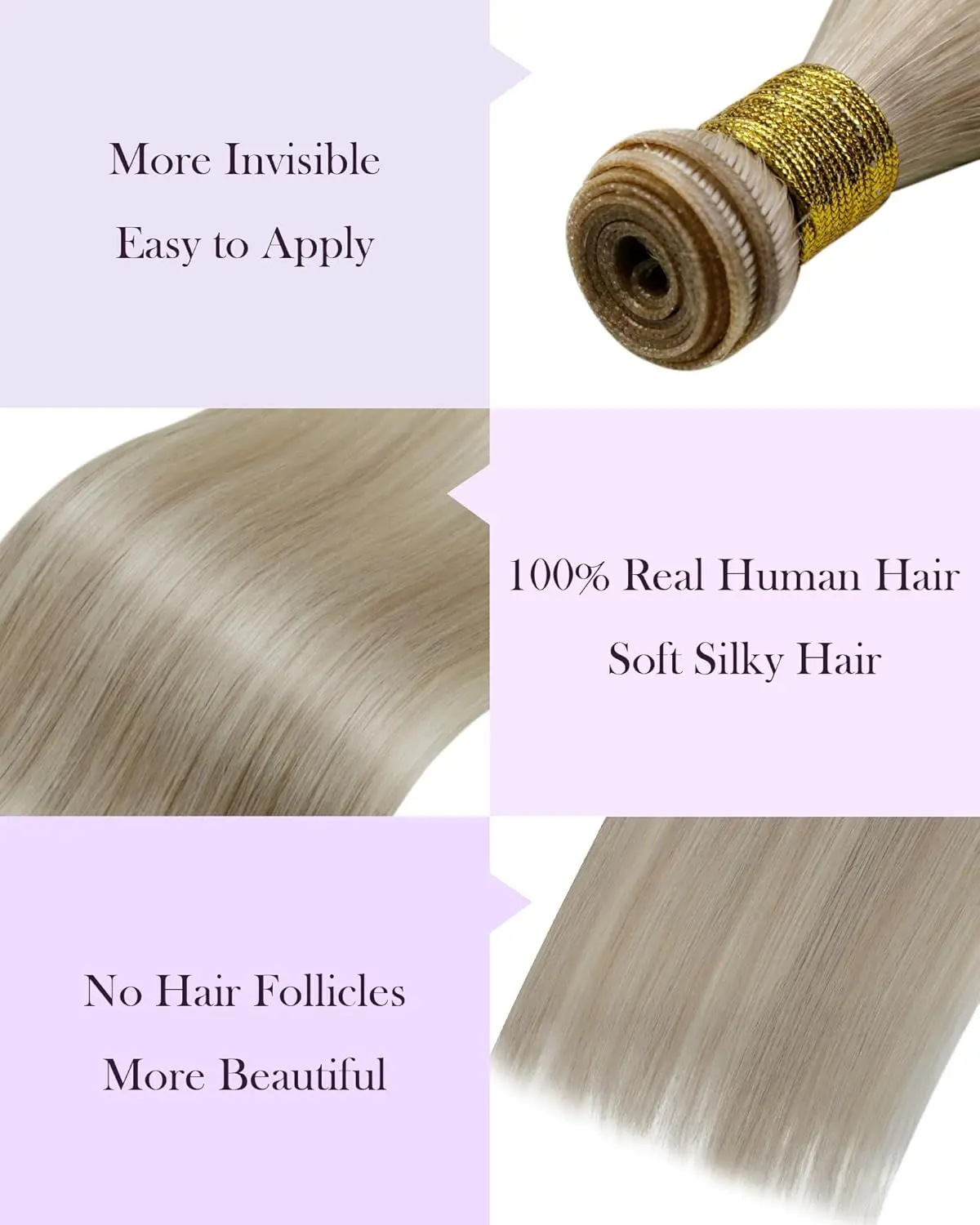 LaaVoo Hand Tied Genius Weft Hair Extensions Human Hair Virgin Human Hair Sew in Hair 50 Gram- 80 Gram SpringStatements