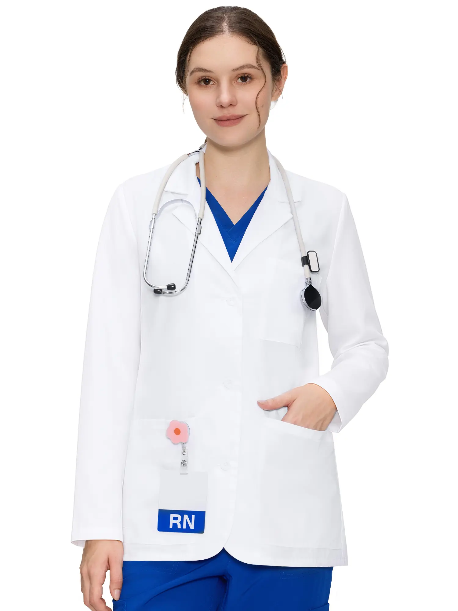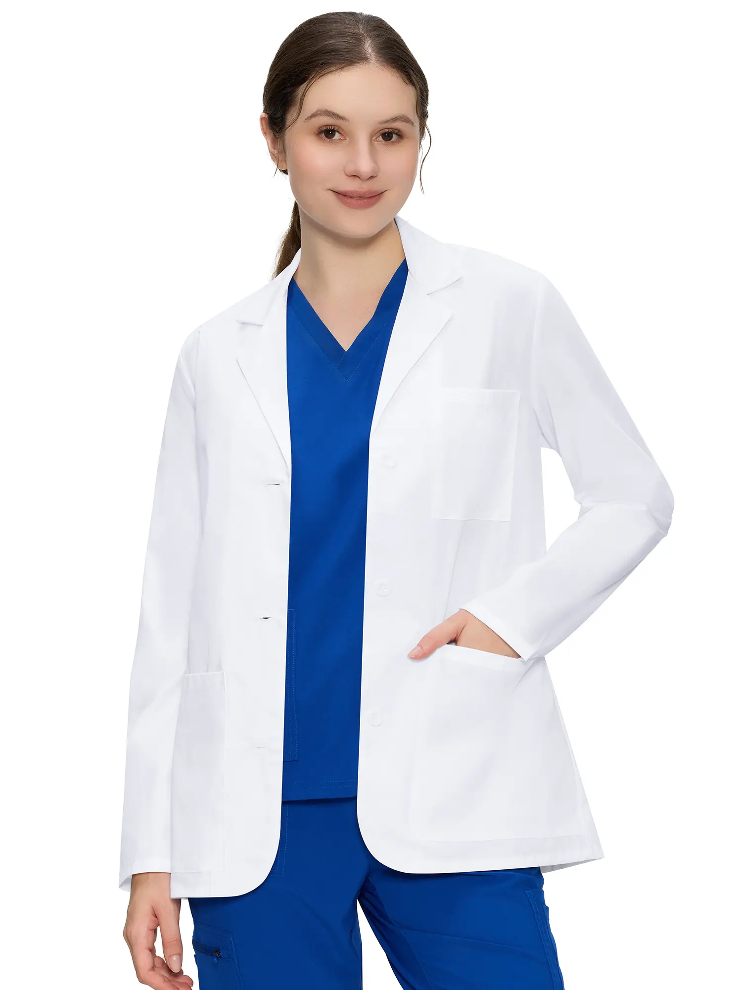 ·Tailored Back Detailing: The back seam design enhances shape and structure without limiting movement, giving this lab coat for women a professional yet comfortable silhouette