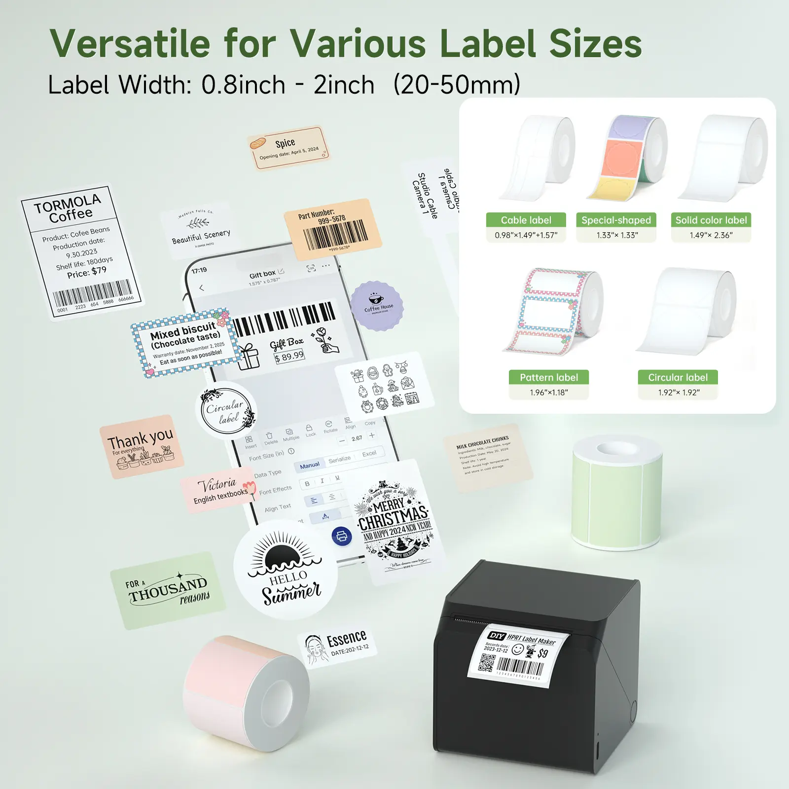 ·Printing width range is 0.8''-2'' (20-50mm)