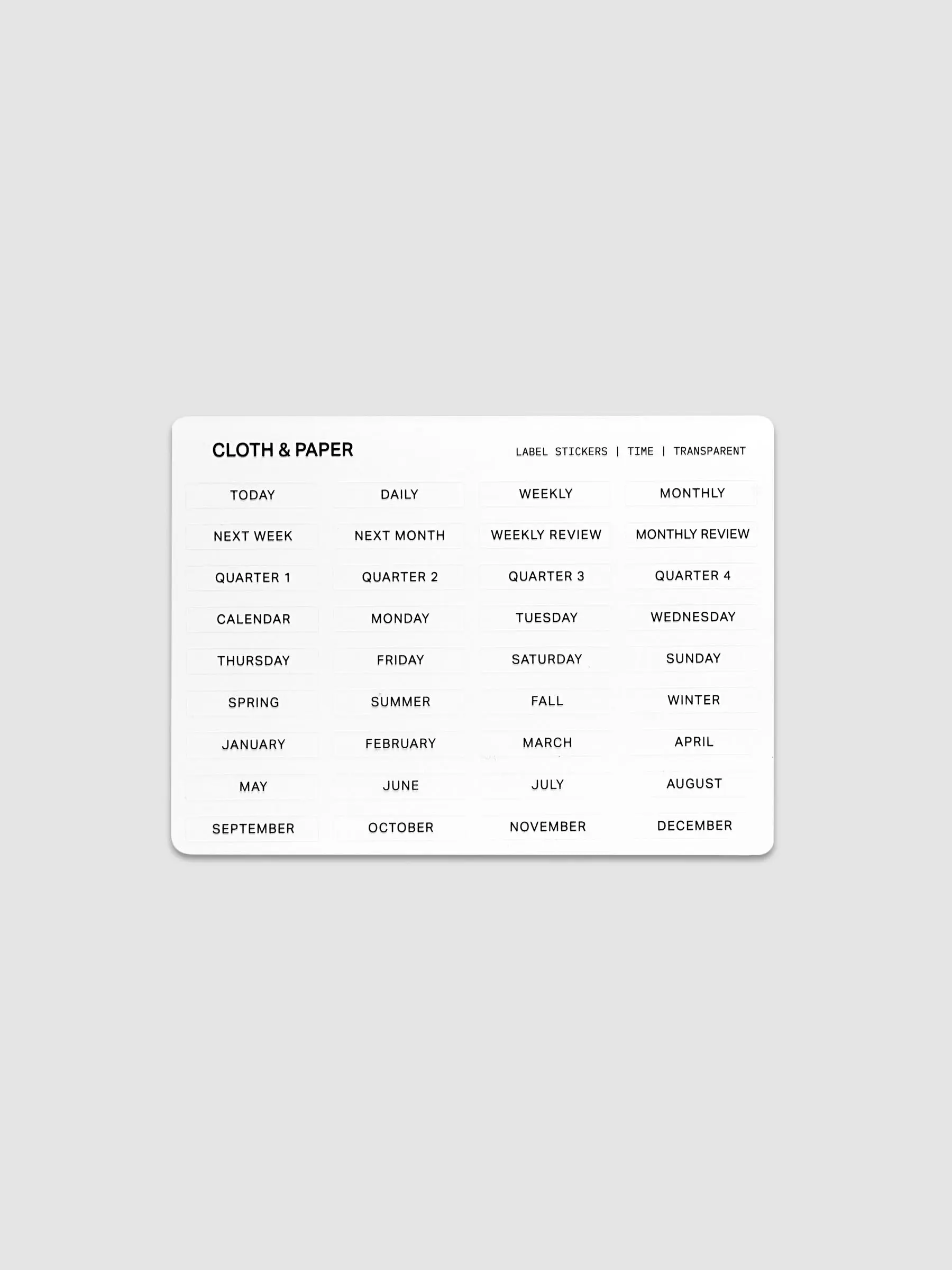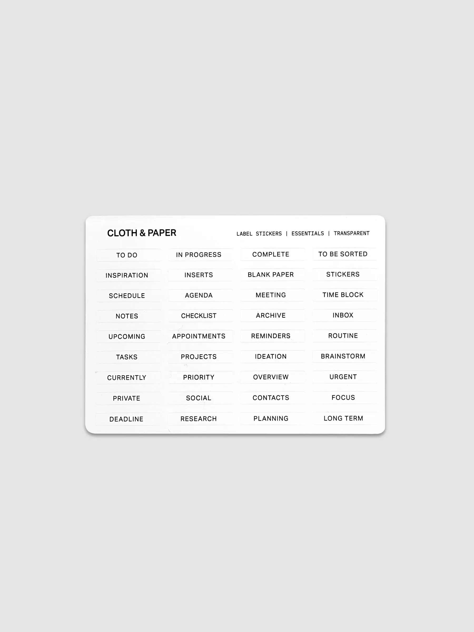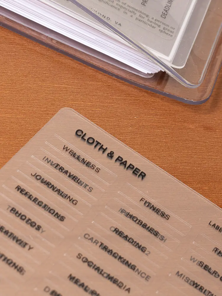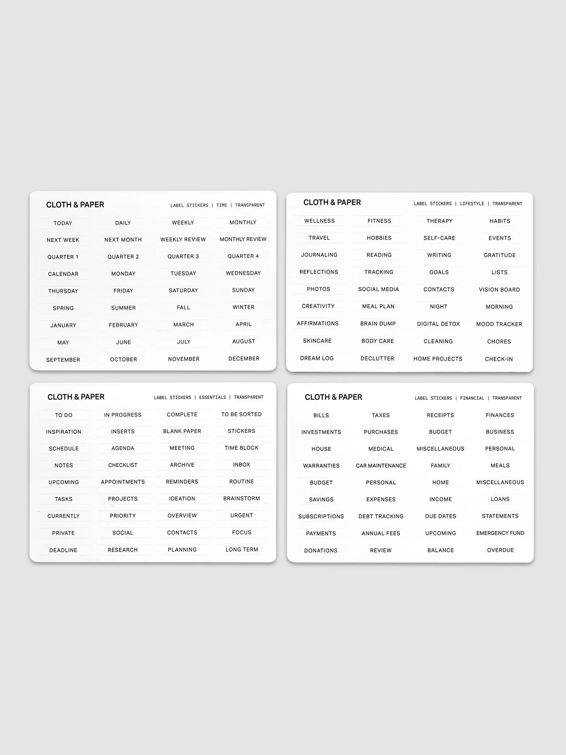Label Stickers | Text are designed to bring clarity and consistency to your planning system. Featuring clean, rectangular labels with black text on a transparent background, these stickers blend seamlessly into your pages while clearly marking important sections and lists.