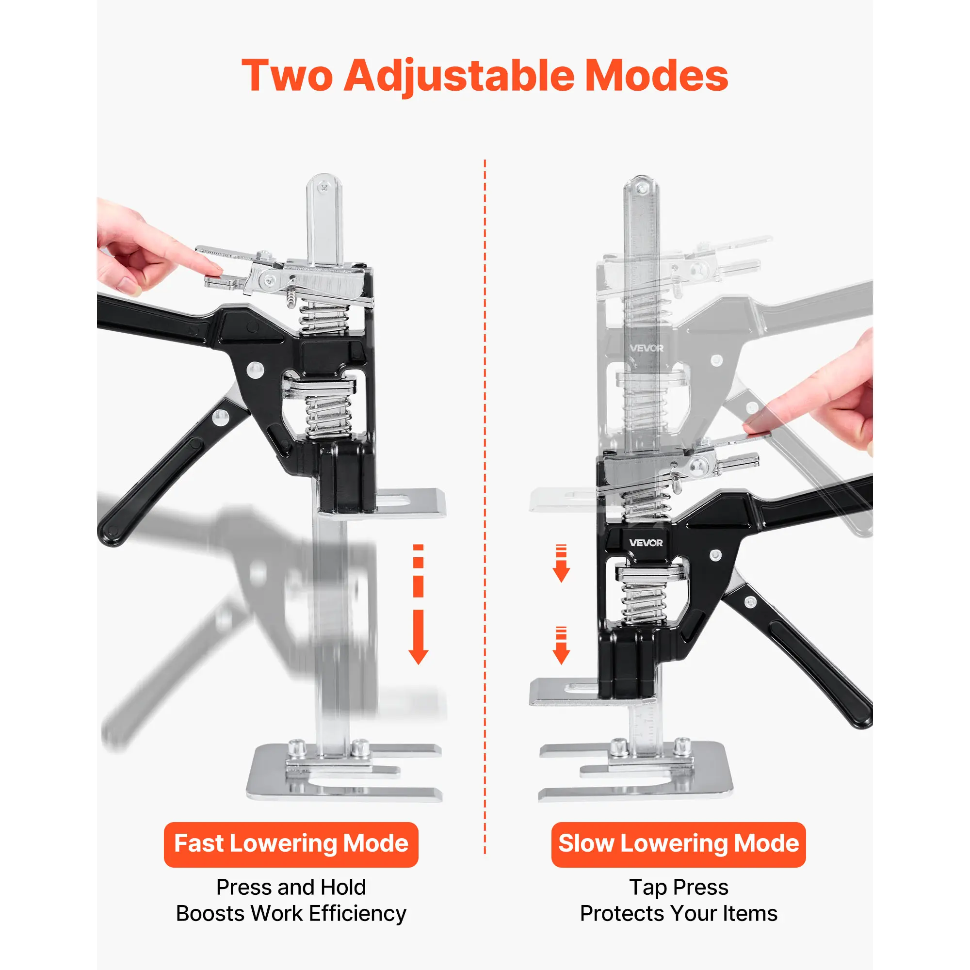 • Dual Descent Modes: The slow descent mode is ideal for precise installation tasks, ensuring accurate positioning and better protecting furniture from bumps or damage. The fast descent mode is ideal for efficient work, saving you valuable time