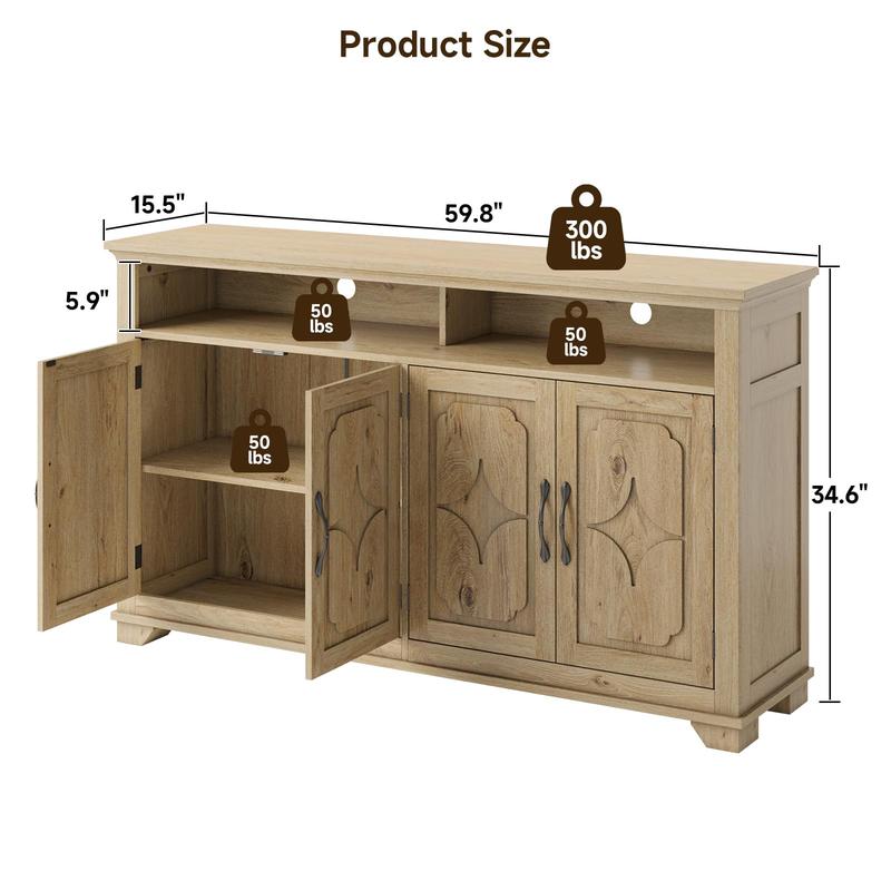 ·Carved Door Design: The carved design of this buffet cabinet adds visual appeal, making the cabinet more artistic and decorative. The carving craft can be combined with a variety of styles, such as classic, modern, or country style, to adapt to different home environments