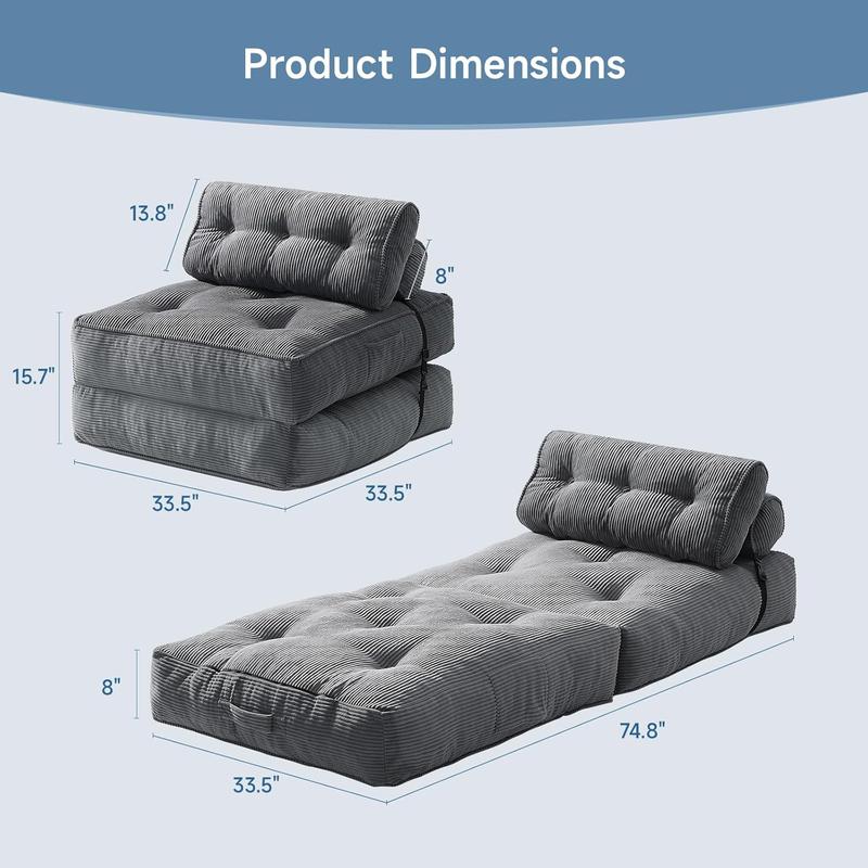 ·4-IN-1FOLDING DESIGN: Experience unparalleled convenience with this foldable sofa bed that easily converts into a cushion, sofa, lounge chair, or bed. It is ideal for accommodating guests or enjoying leisure activities such as reading and watching movies.