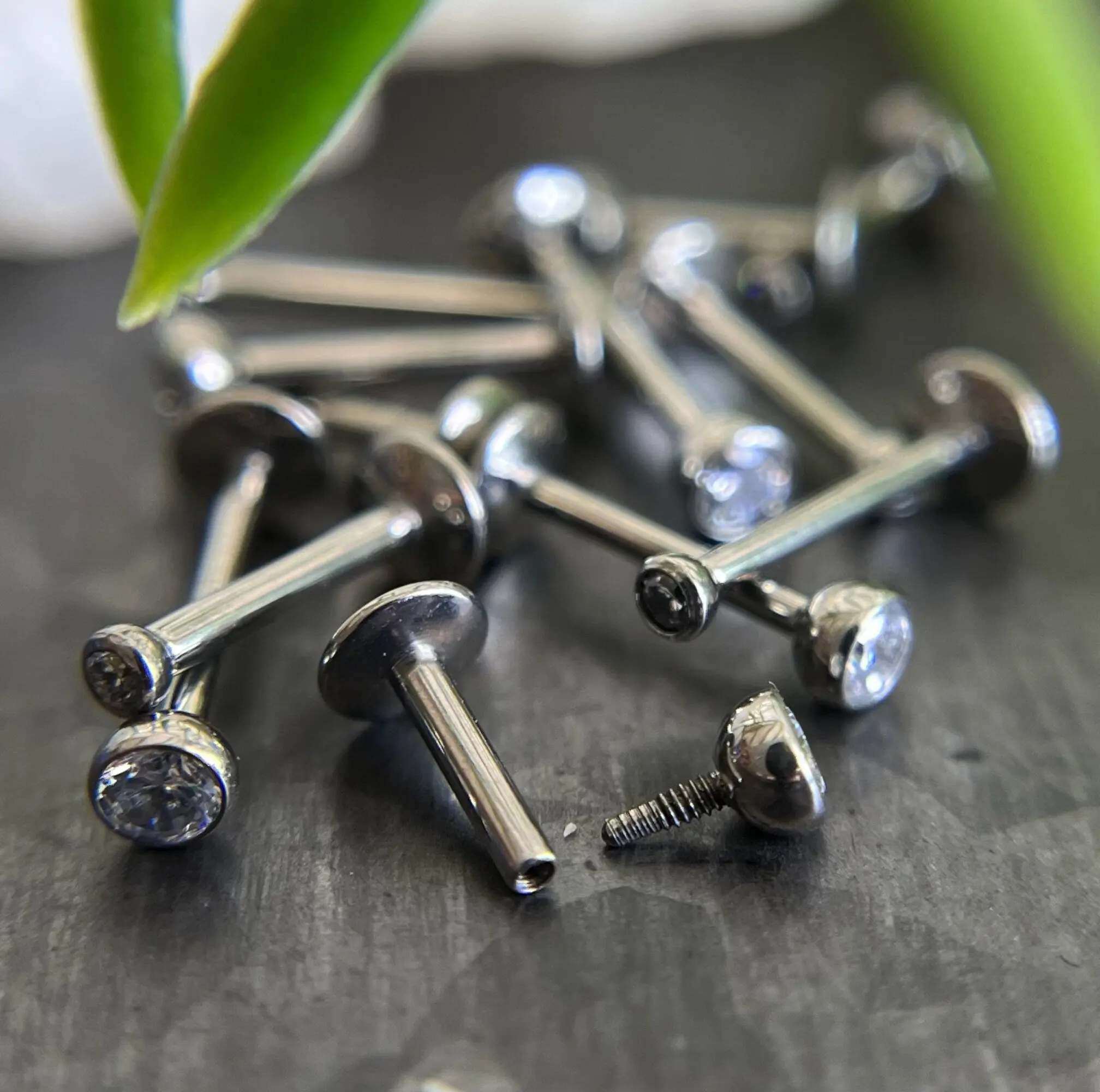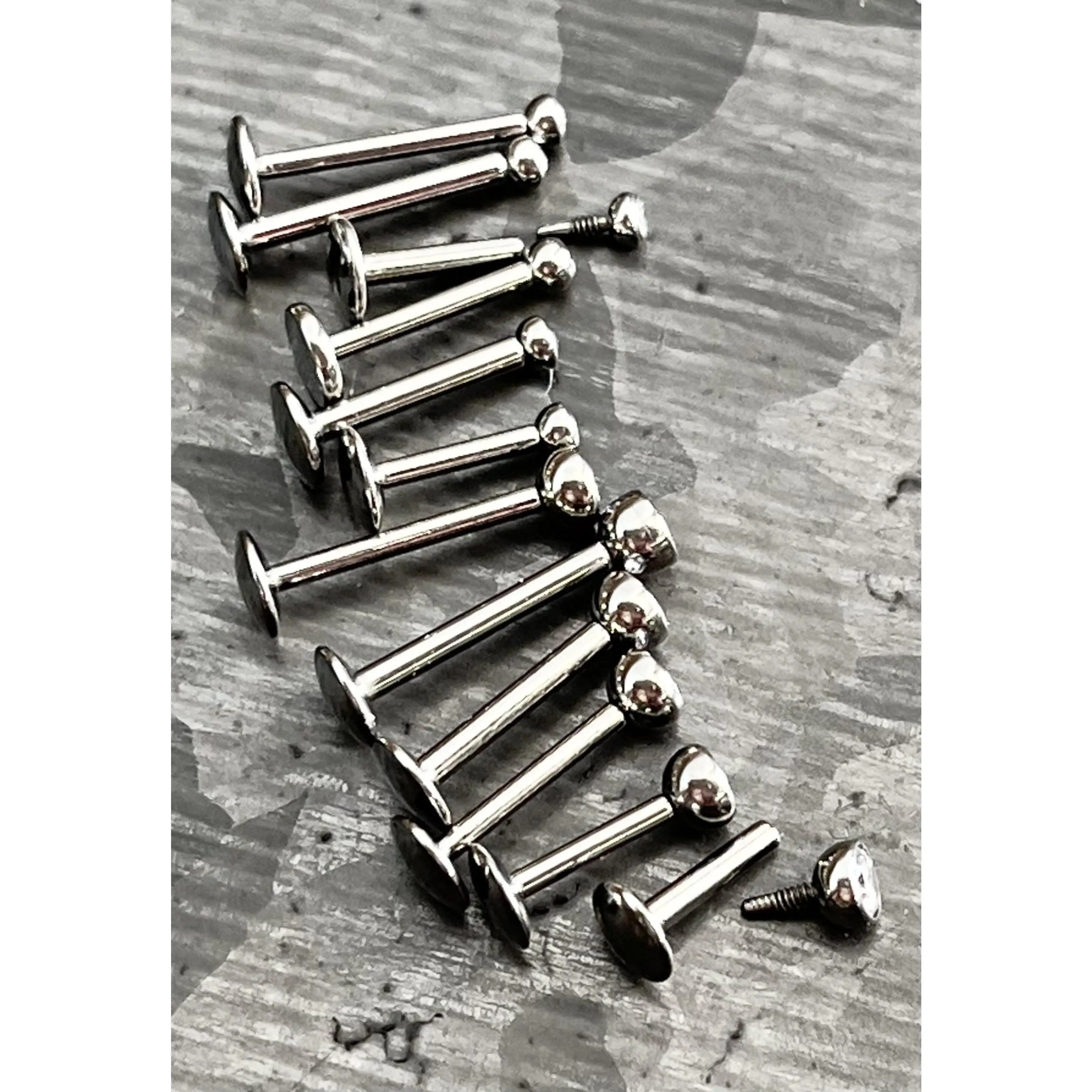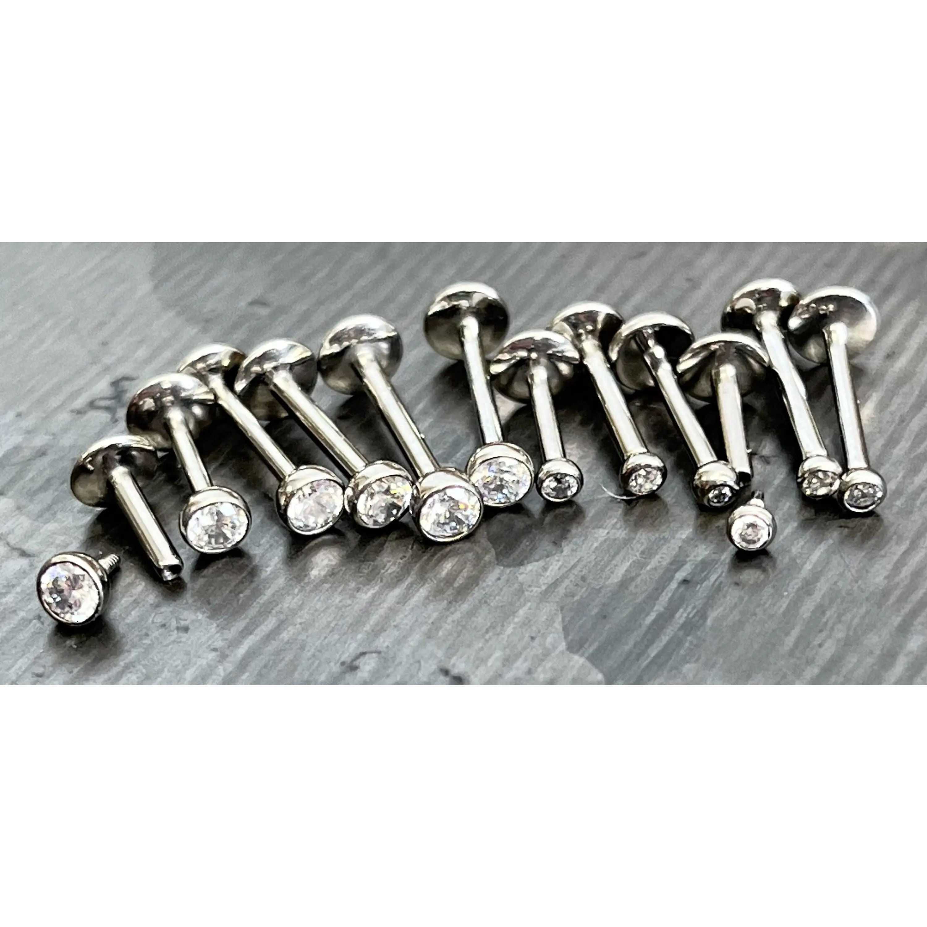 1 Piece of Internally Threaded Solid Titanium Bezel Gem Labret Stud Lip Ring - 16g or 18g - Gem Size: 2 or 3mm - Lengths - 6mm, 8mm or 10mm!