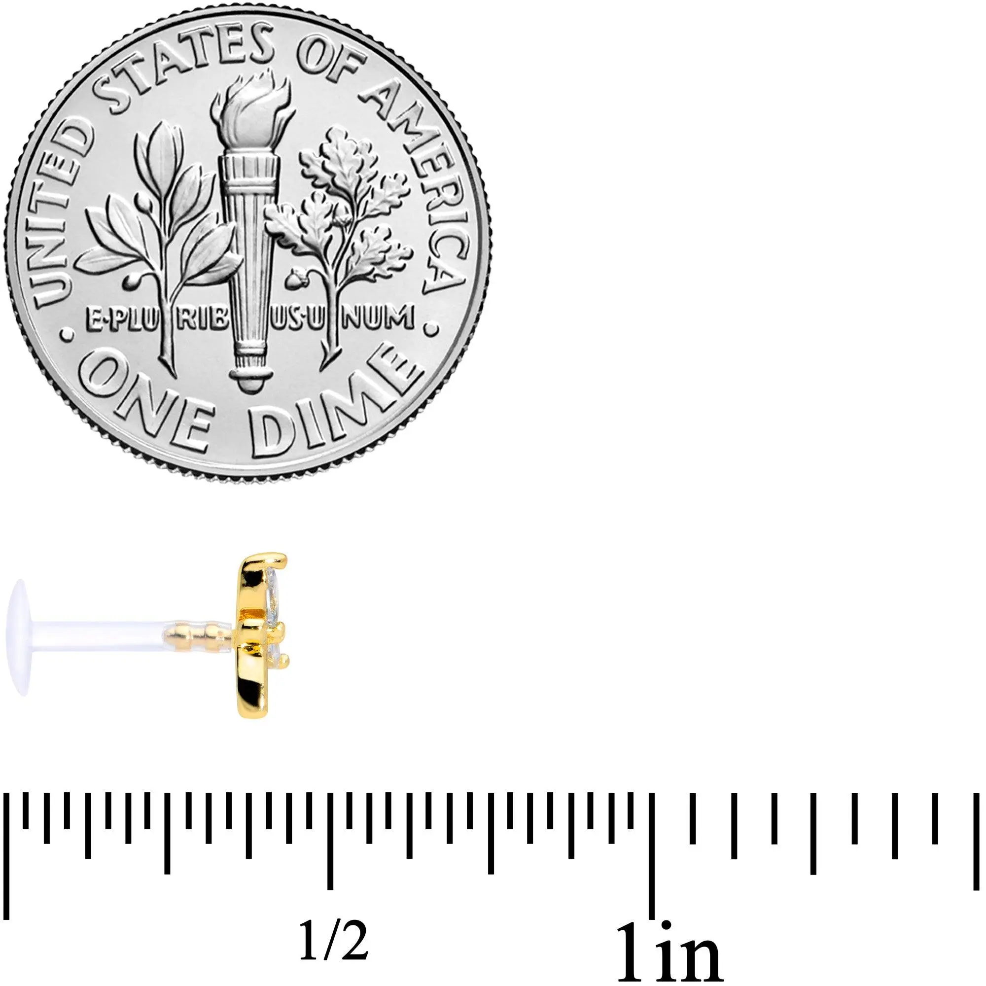 Keep your jewelry options open with this set of 16 gauge cartilage jewelry! You get two that are made with 8mm gold tone PVD over 316L surgical grade stainless steel straight barbells with flat disc ends. One features a gold tone heart charm for a classic, romantic look. The other features a flower charm with a clear cubic zirconia gem set at the center for a look of stylish whimsy. The third one is made with an 8mm flexible Bioplast straight barbell with a flat disc end. It features a dragonfly charm with clear gems set in its wings for a look that's perfect for nature lovers! This tragus jewelry can be worn in lip piercings like the labret and monroe as well as cartilage piercings like the helix, tragus, and conch. Sold as a set of three.Specifications16 Gauge (1.2mm), 5/16" (8mm), Gold Tone PVD over 316L Surgical Grade Stainless Steel Straight Barbell, Flexible Bioplast Straight Barbell, Cubic Zirconia, Sold as a Set of 3