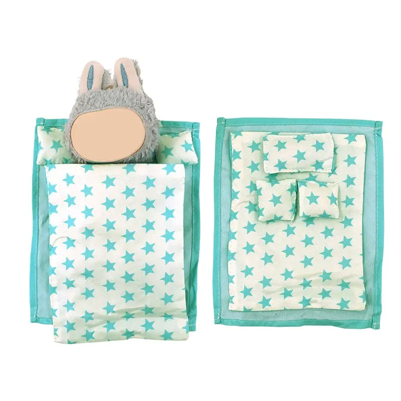 Labu Bedding Set, First & Second Generation Blind Box Pullbubu Sitting Party Doll Clothes Accessories Handmade Bedding Sheet Quilt Pillow