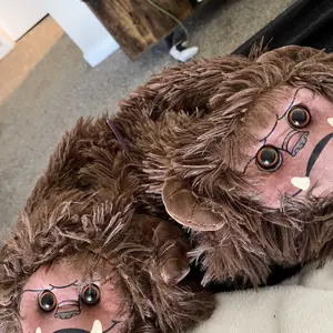· Fiber filled slippers have long faux fur, plastic eyes, fiber filled horns and ears