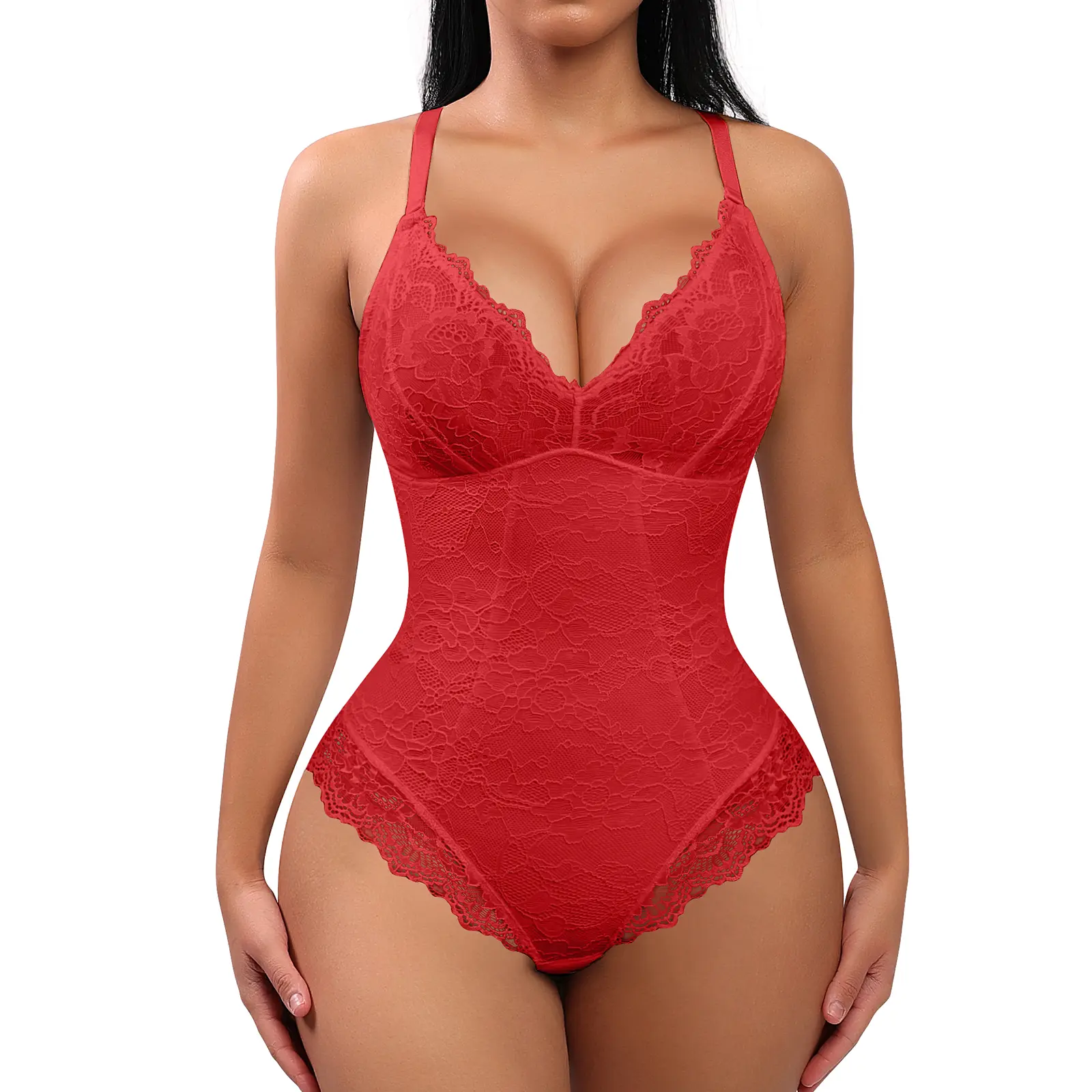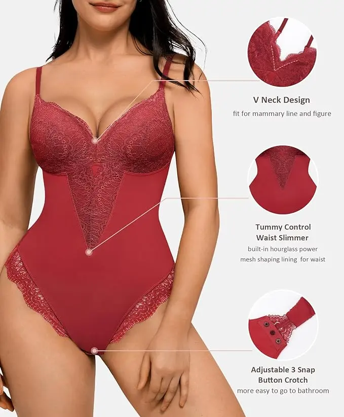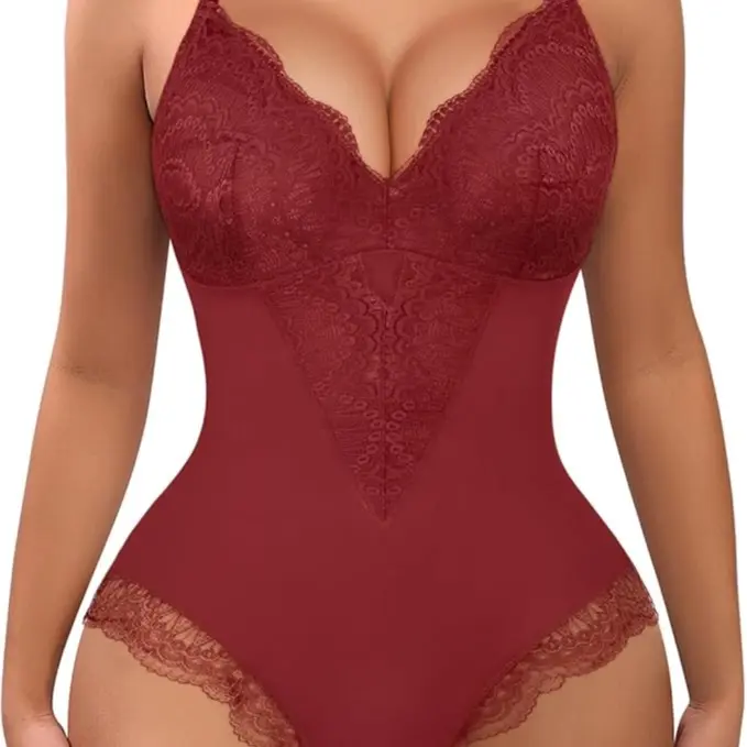 Lace bodysuit with little stretchy only, if you are over C cup, then choose one or two size up.