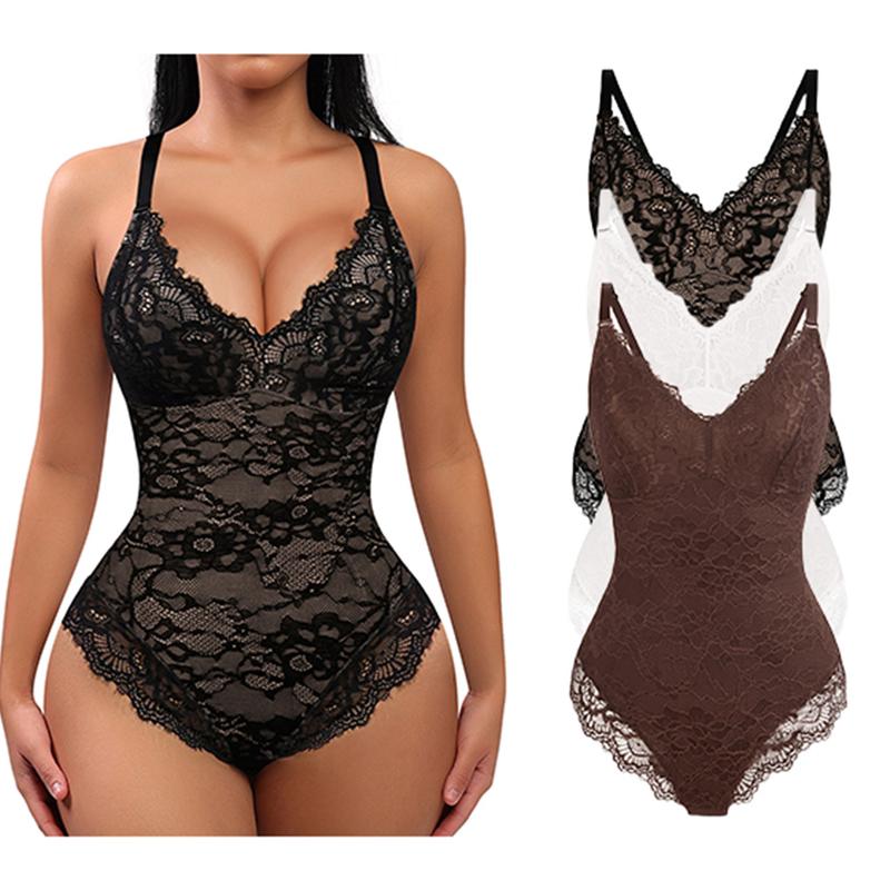 Lace bodysuit with little stretchy only, if you are over C cup, then choose one or two size up.