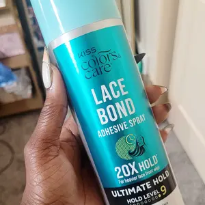 Melt your lace and keep it in place! KISS Colors & Care Ultimate Hold Lace Bond Adhesive Spray. Perfect for daily wig applications and touch-ups. This ultimate hold formula is ideal for heavier wigs and provides long hold that lasts all day.