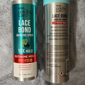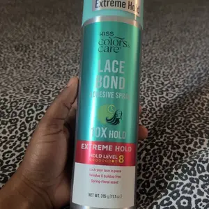 Melt your lace and keep it in place! KISS Colors & Care Extreme Hold Lace Bond Adhesive Spray. Perfect for daily wig applications and touch-ups. This extreme hold formula is ideal for everyday use and provides long hold that lasts all day.