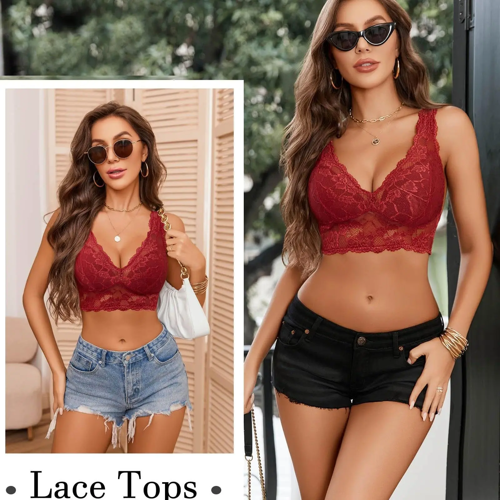 ·MaterielLace bralettes for women is made of 90%nylon,10%spandex.Unpadded and Wirefree, Soft and comfortable lace fabric. It is super skin feel, creamy and stretchy with plunge bra, wireless, adjustable strappy, and floral lace.
