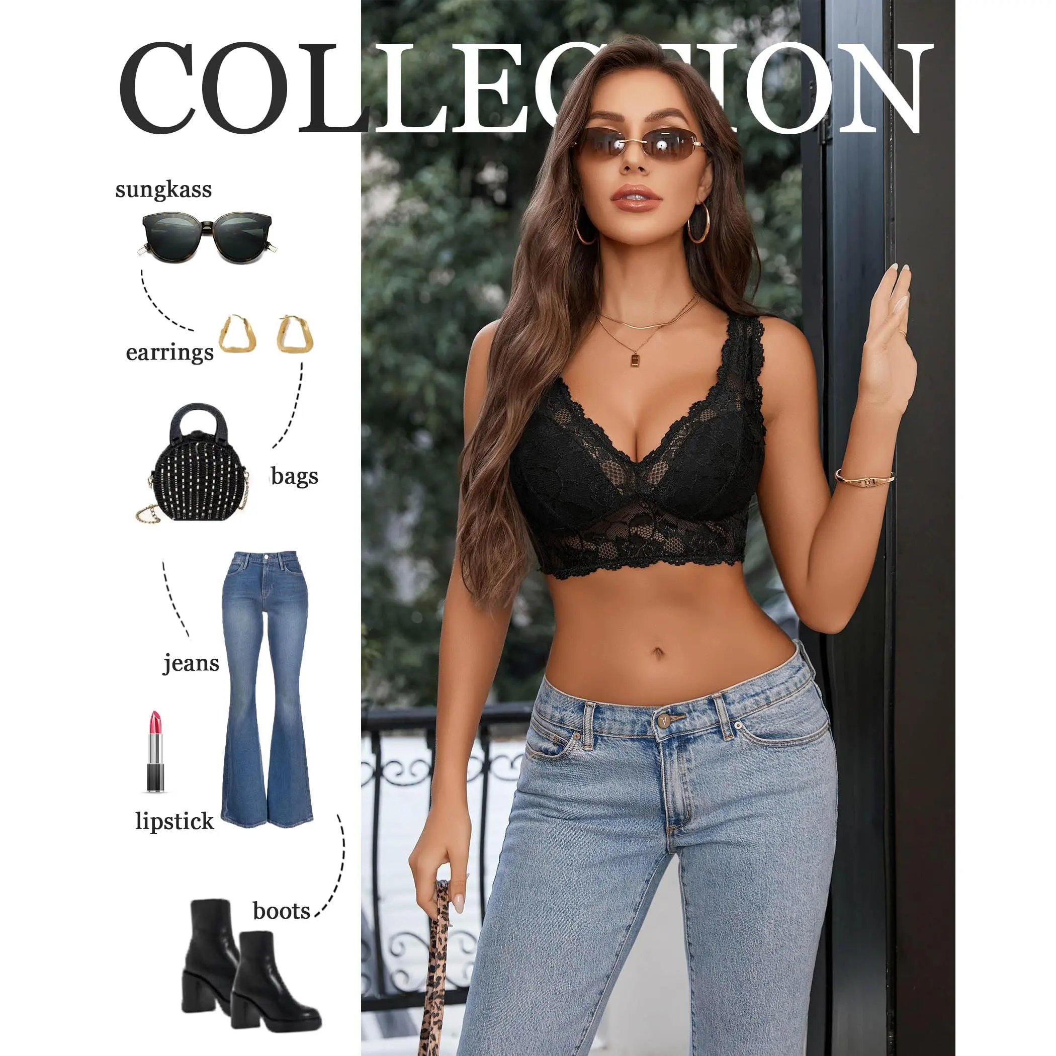 ·Design: Plunging neckline to achieve a stylish look. At the same time, this lace top uses a hollow floral lace pattern, you can match with open back tshirts tops, making your figure look pretty and charming.