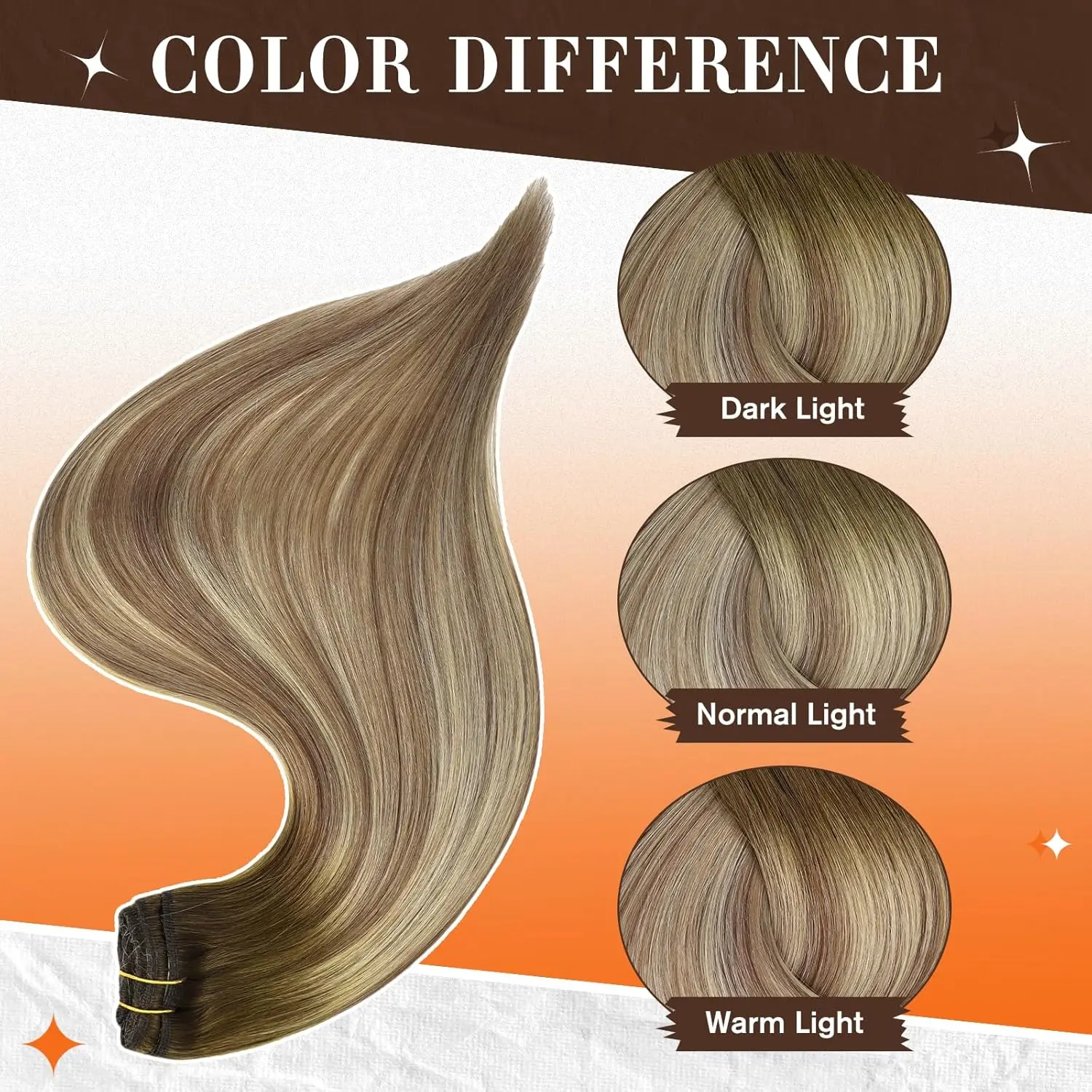 【30+ Fashion Color Human Hair】Including solid, highlight and balayage. Please note that due to display variations, the actual colors may differ slightly from what you see on your screen. Effortlessly transform your look with easy-to-use clip-in hair extensions. With a wide range of colors, achieve versatile styling with ease.