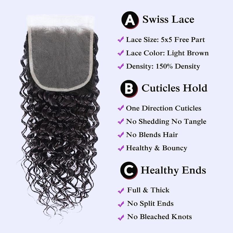 ยทHair Grade: 12A Burmese Curly/Water Wave/ Loose Wave/Loose Deep Closure For Black Women,Softness and Smoothness.