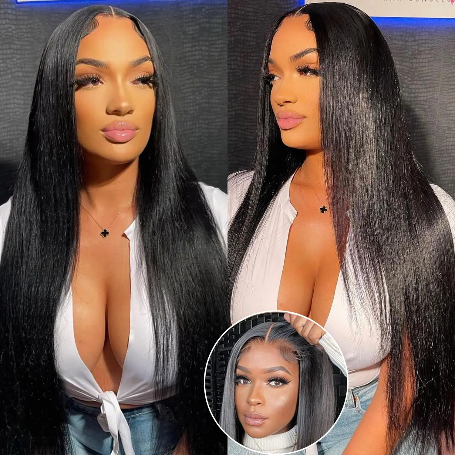 5. Bling Hair Wear to Go 5x5 Lace Closure Wig Bleach Knot Human Hair Pre Plucked Pre Cut Straight Brazilian Human Hair Natural Color For Beginner No Glue