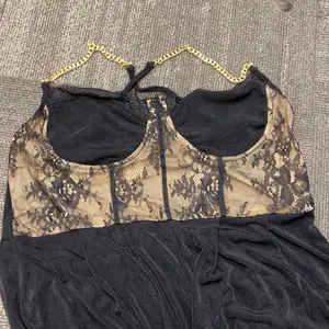 I was expecting a jumpsuit with see through lace and actual cups and it has tan backing on the middle and the smallest fabric cups ever