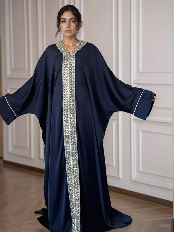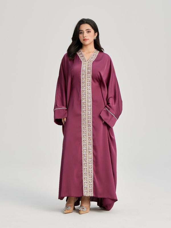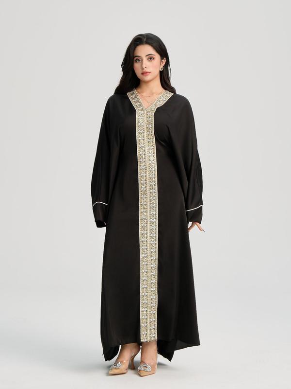 Women's Lace Embellishment V Neck Abaya, Modest Long Sleeve Maxi Dress for Party Wedding Guest, Ladies Islamic Clothing for All Seasons, Modest Muslim Outfits