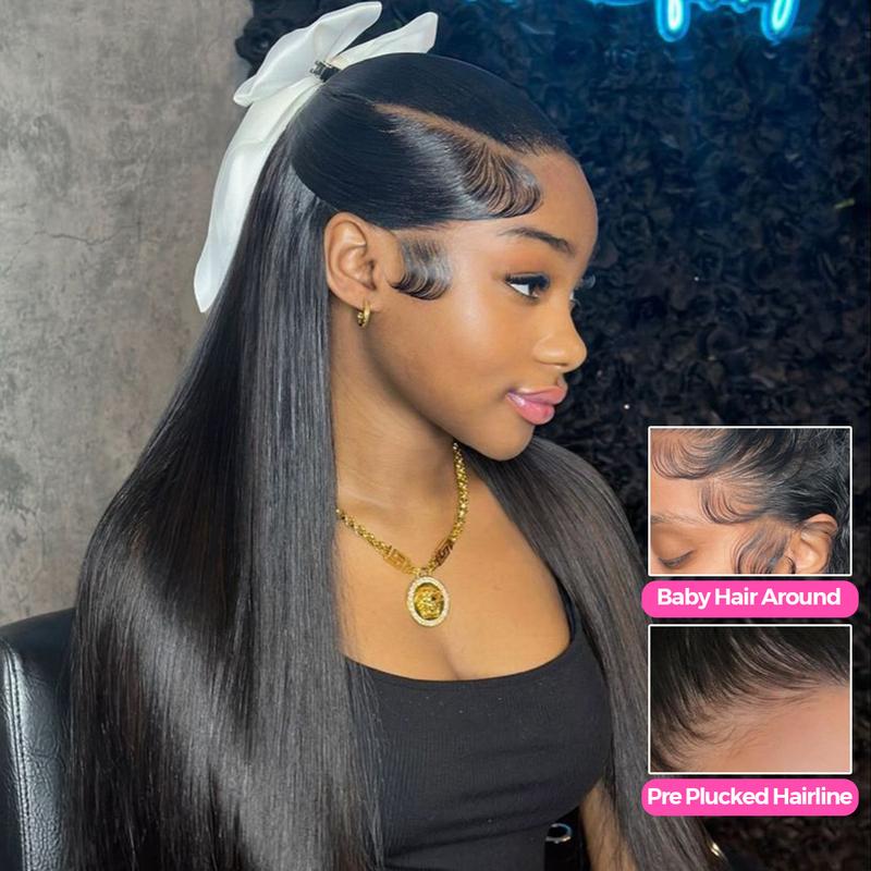 [Clearance Sale]CurlyMe 13x6 Full Lace Frontal Straight Human Hair Wear Go Glueless Wig With Elastic Draw-string