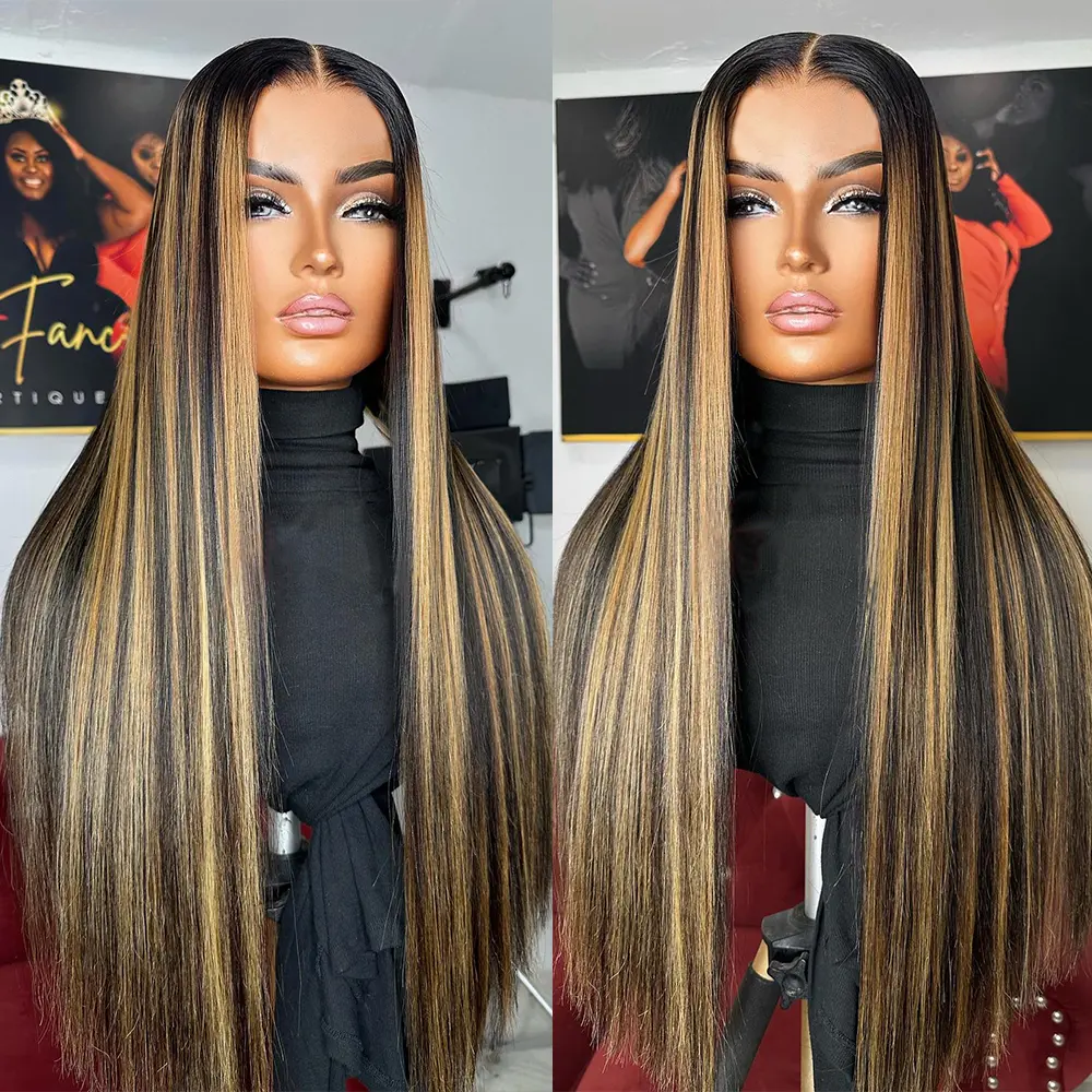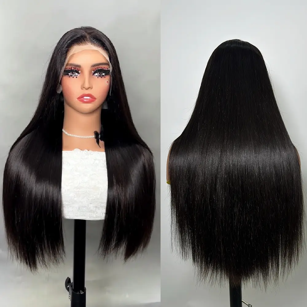 Midulla Double Drawn Silky Straight 13x6 Transparent Lace Front Wig Human Hair 200%Density Pre Bleached Knots Lace Frontal Wigs for Women