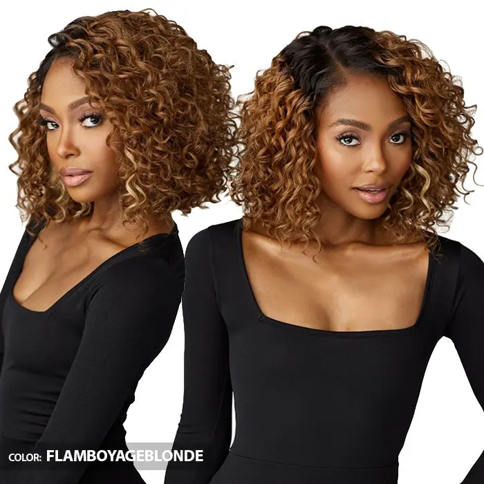 SHOWN COLOR: FLAMBOYAGEBLONDE BRAND: Sensationnel TYPE: Lace Front Wig STYLE: Curly Bob MATERIAL: Synthetic Hair  LENGTH: 12" HEAT RESISTANT: Yes DYE/BLEACH/PERM:  DESCRIPTION :