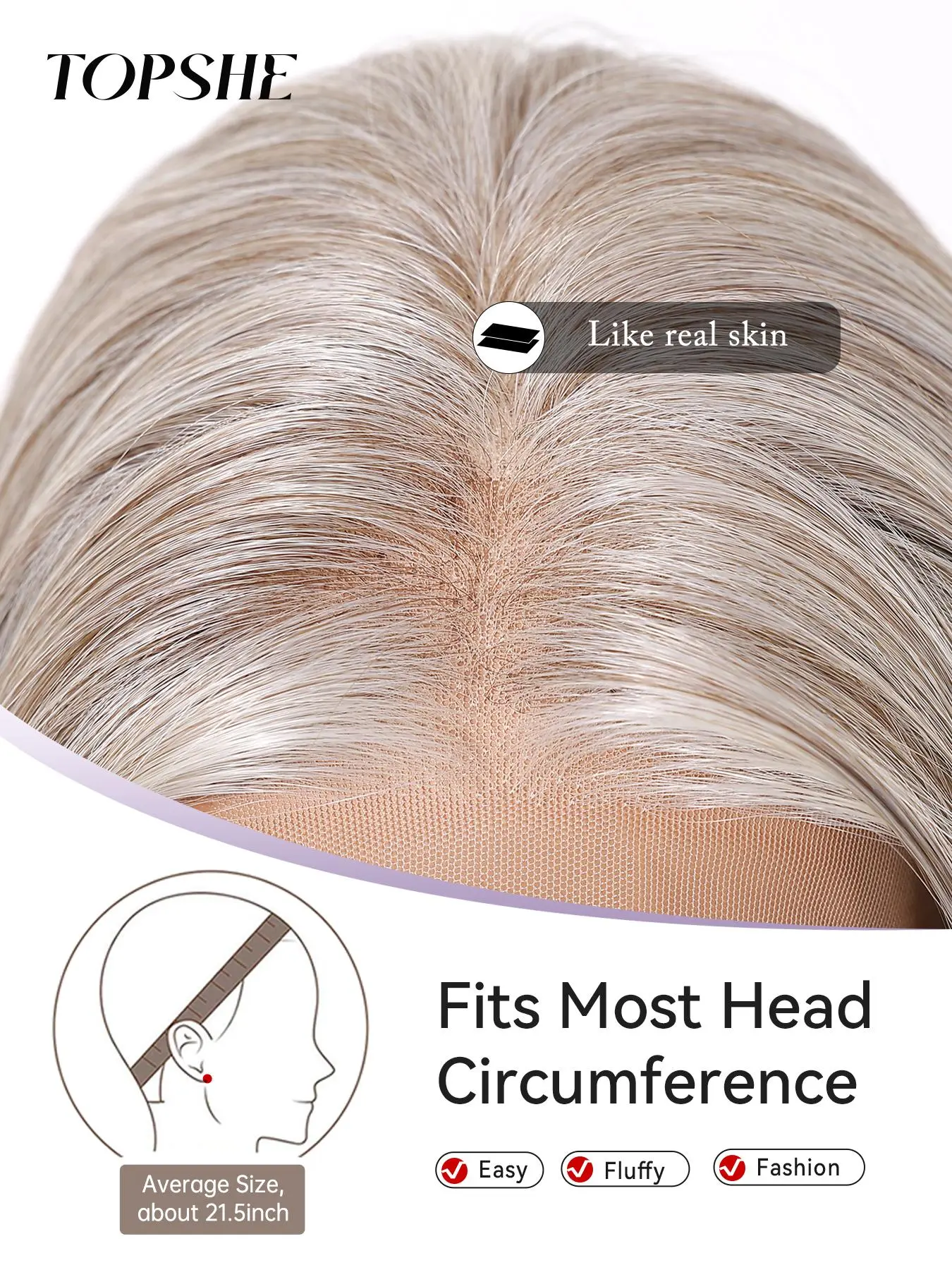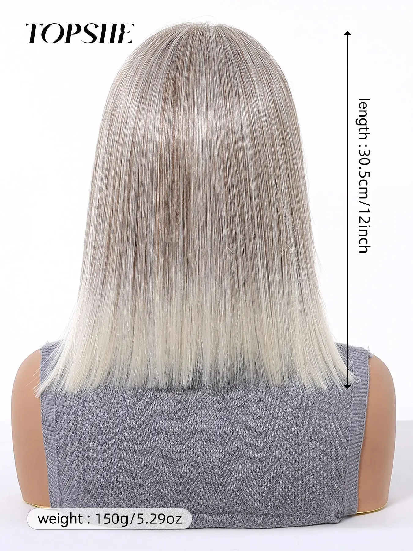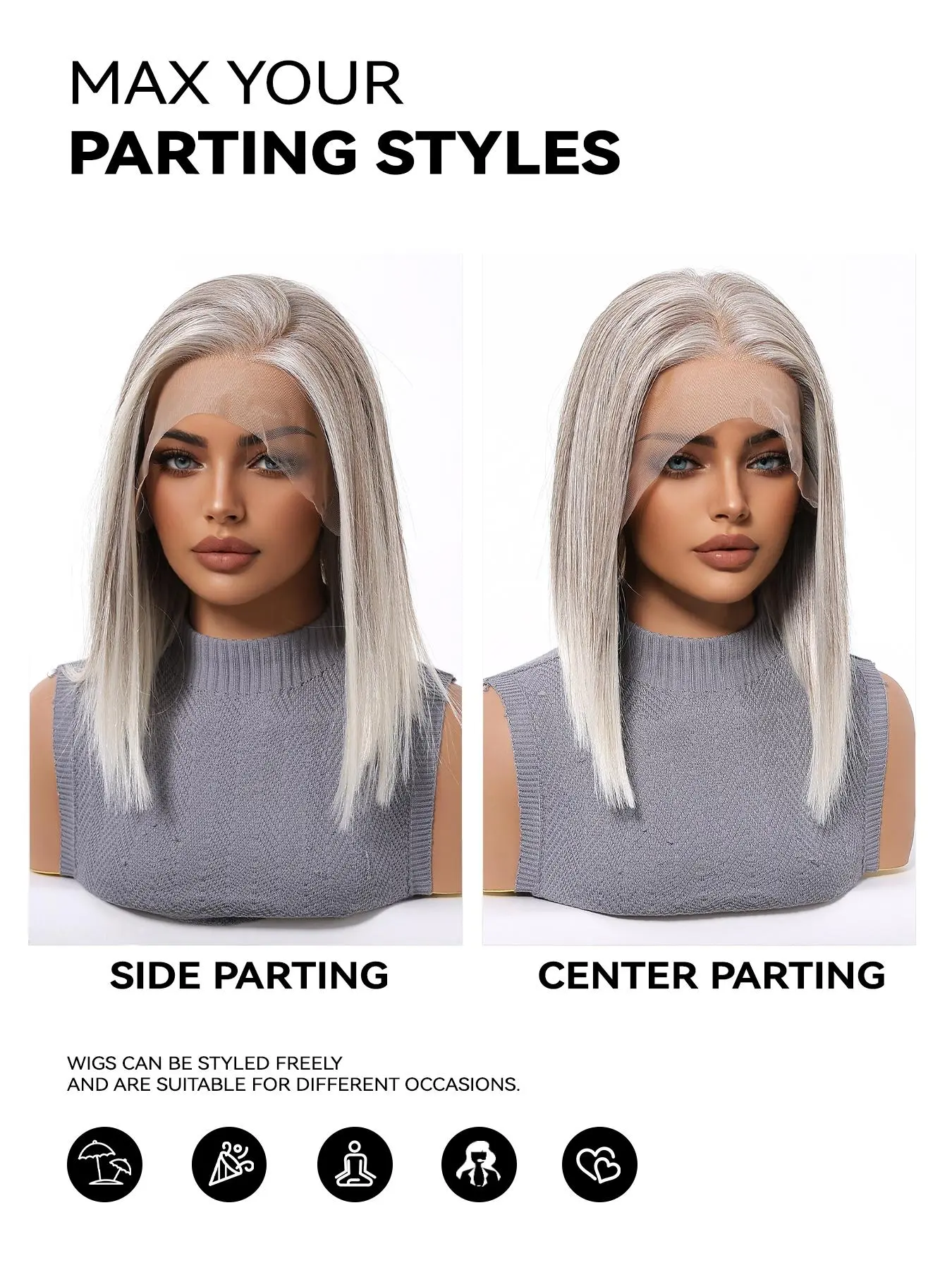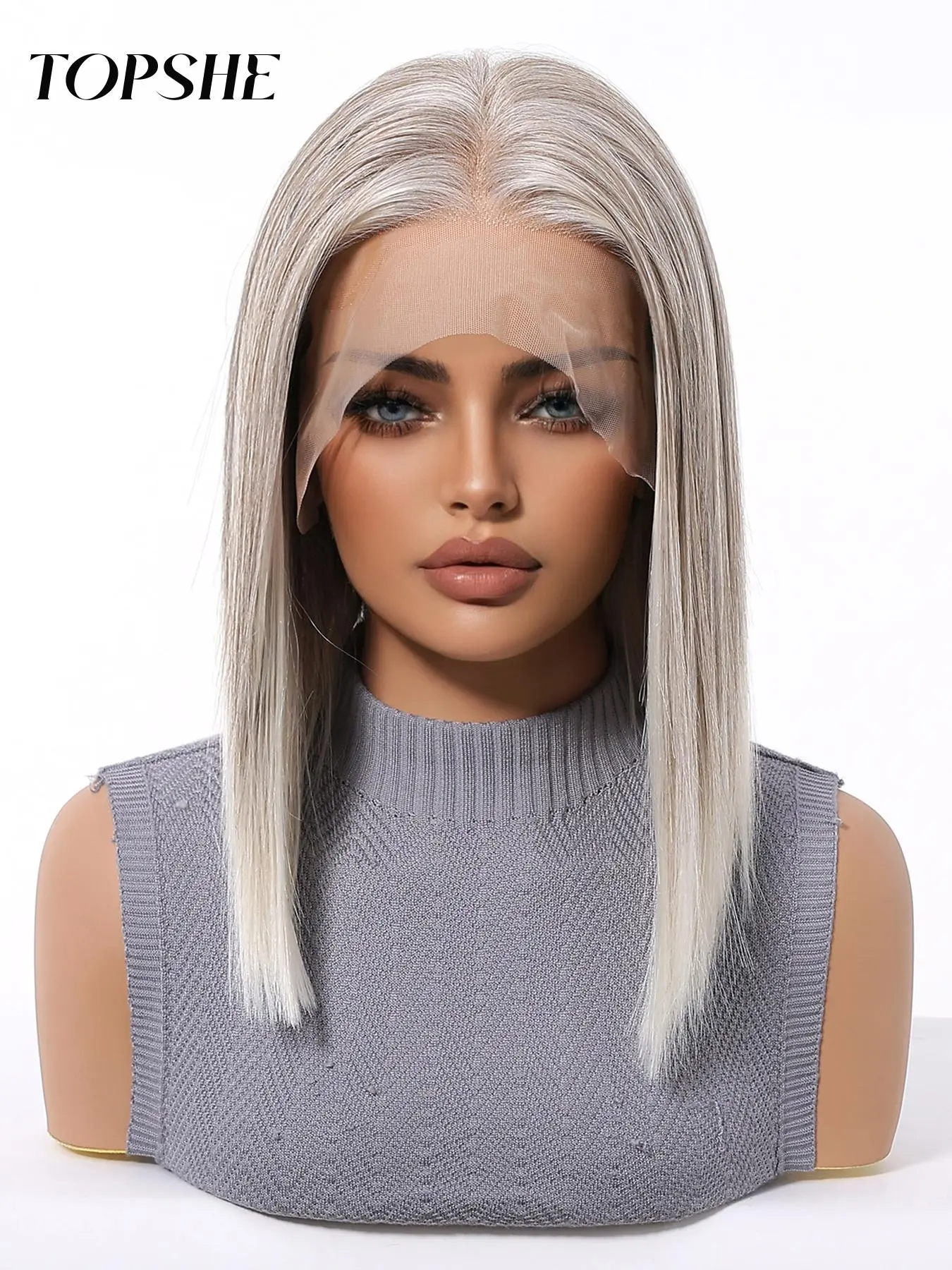 Topshe 13x6 HD Lace Front Wig, 12 Inch Short Silver Color Gradient, High Temperature Resistant, Comfortable Breathable Realistic Cosplay Wig
