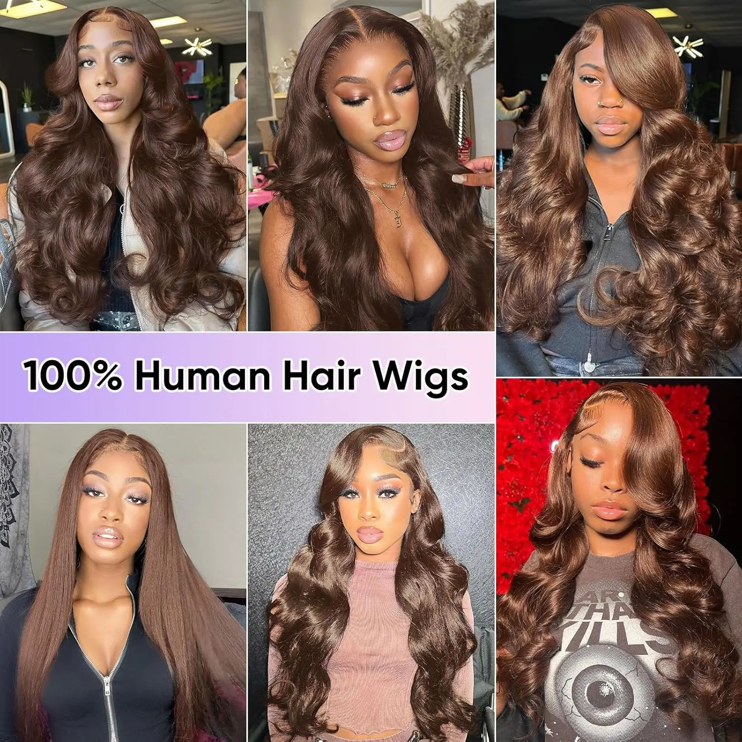 Bling Hair 13x6 Transparent Lace Frontal Real Hair Wigs #4 Chocolate Brown Brazilian Body Wave Human Hair Wigs Transparent Lace Wigs For Women