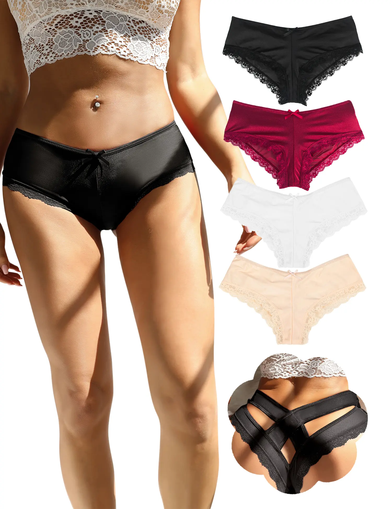 ·Lace Boyshorts for Women: Flaunt your curves with ohyeah womens sexy low rise lace panties, this cheeky lace underwear has features a cute bow decor at full-coverage front, a crisscross strap hollow out back details
