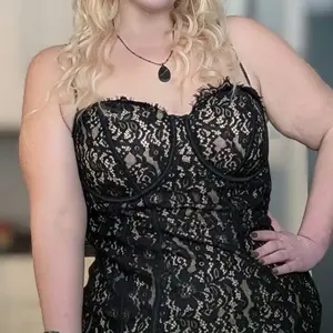 Haven't seen this on really anyone my body type but this dress is beautiful! Definitely short-hence the tights. I sized up and shouldn't have; baggy in certain spots and the chest is a little big for me, but overall STUNNING!