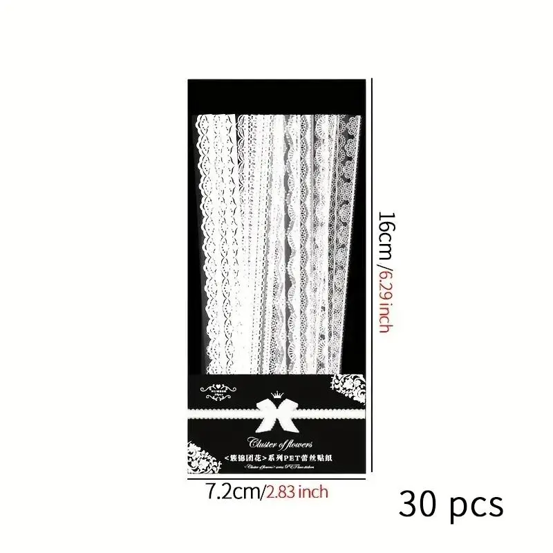 Random Color Lace Pattern Sticker, 30pcs/pack Waterproof Pet Lace Decorative Sticker, Self-Adhesive Scrapbook Material for DIY Projects #customvinylstickers #nailstickers #lillylashesselfadhesive #stationeryessentials #diynailstickers #heartstationery #diynailsticker #laceproducts #scrapbookessentials #christmasribbon