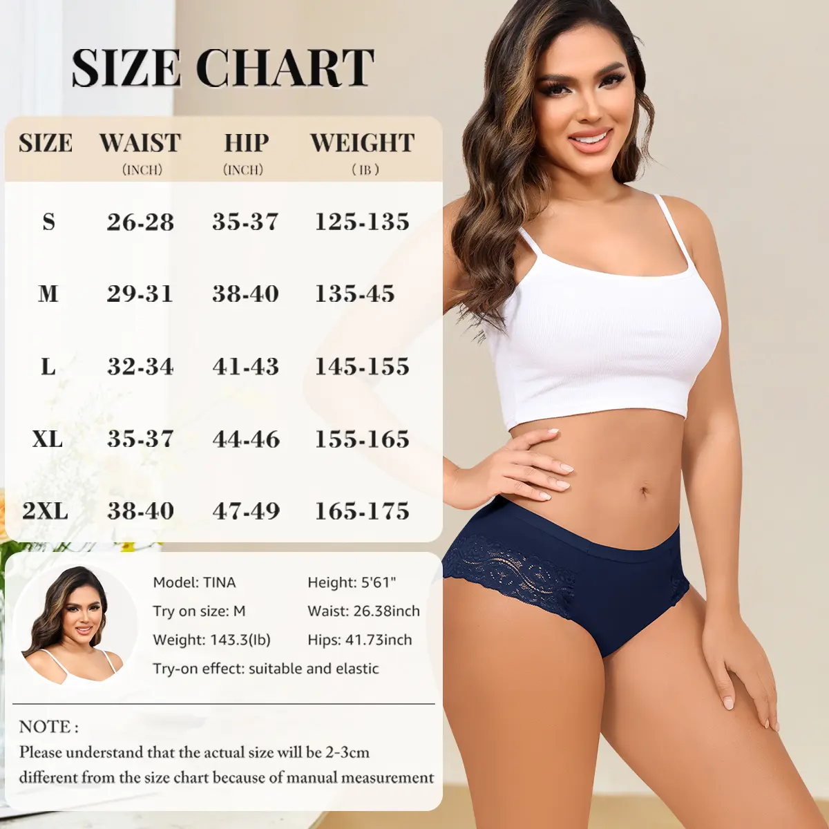Elastic Fit: With its stretchable fabric, seamless lace underwear adapts to your body shape, providing a custom fit that feels like a second skin, suitable for various body types