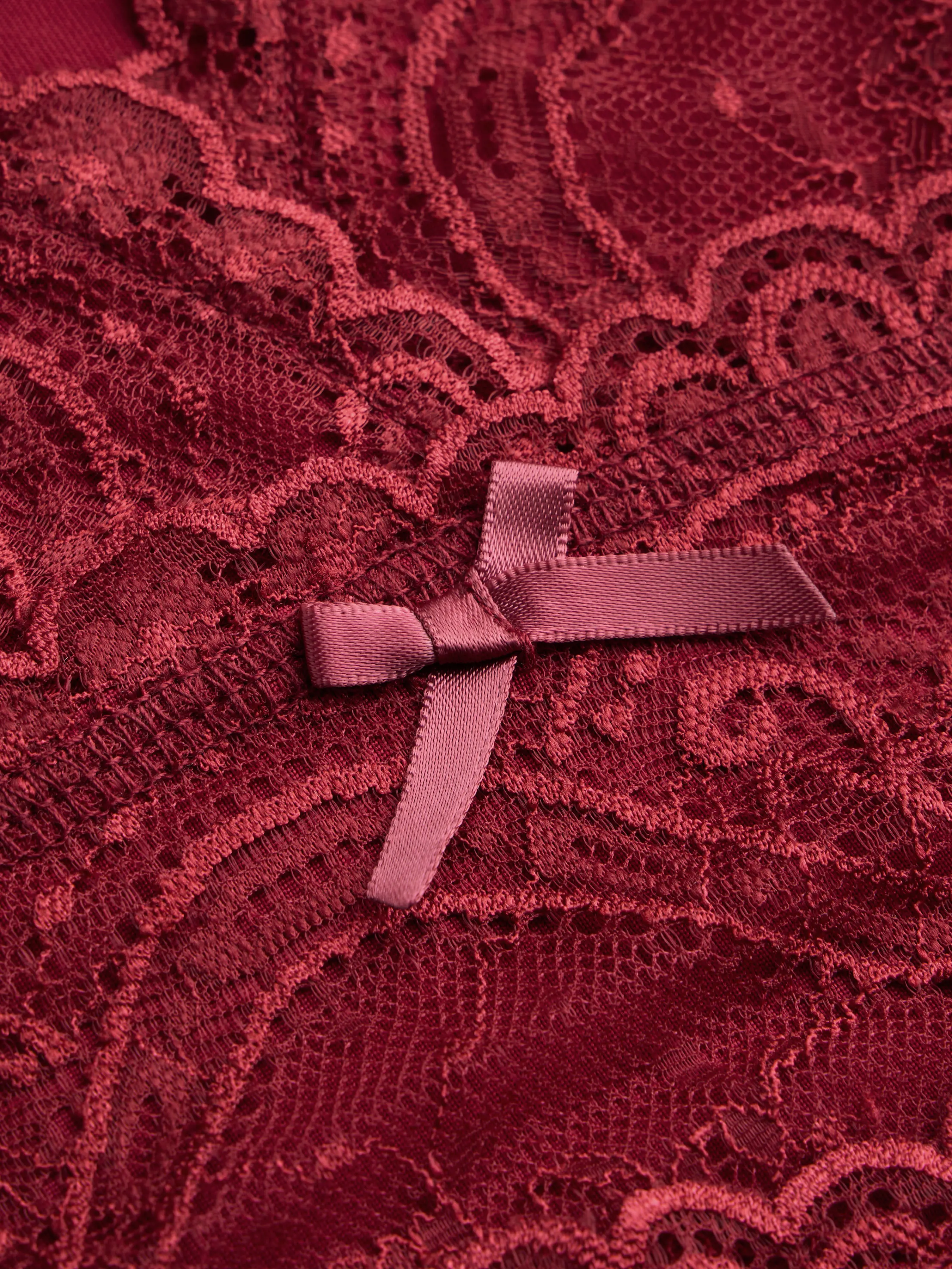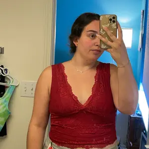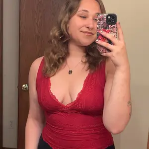 Cute top! Love the lace. Doesn’t really have much stretch though, if you have a bigger bust it won’t fit the best in the chest. But gonna make it work! The red is a nice color