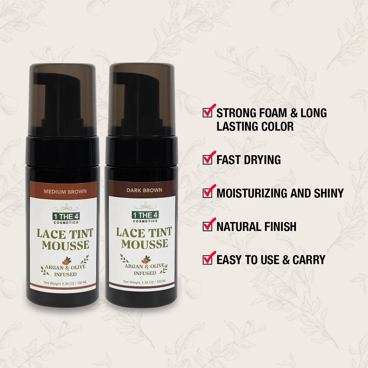 1 THE 4 Cosmetics Argan & Olive Infused Lace Tint Mousse 3.38oz/ 100ml