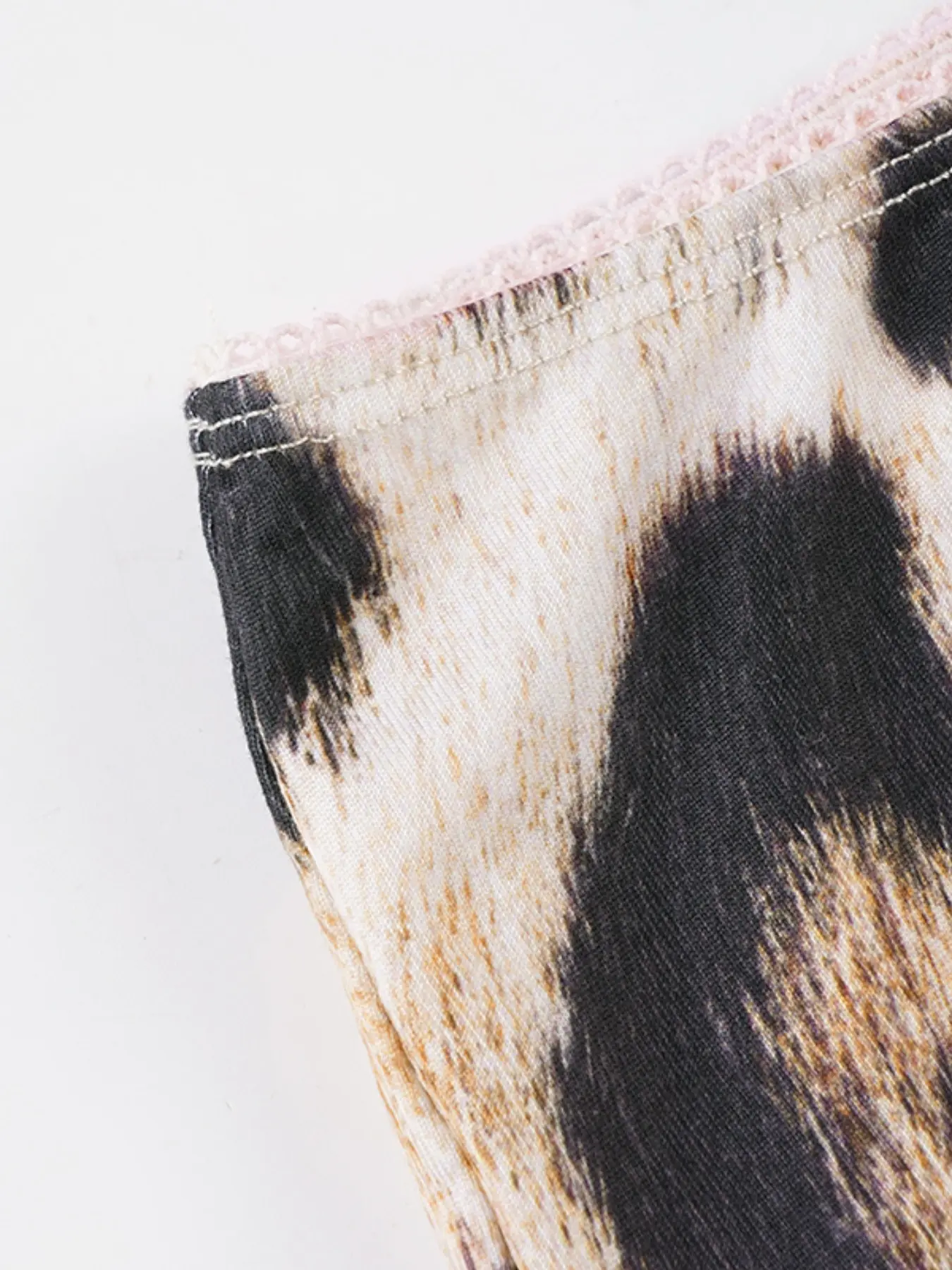 5. Lace Trim Leopard Print Spaghetti Strap Top & High Waist Shorts Set, Y2K Style Summer, Slim-Fit Women's Clothing