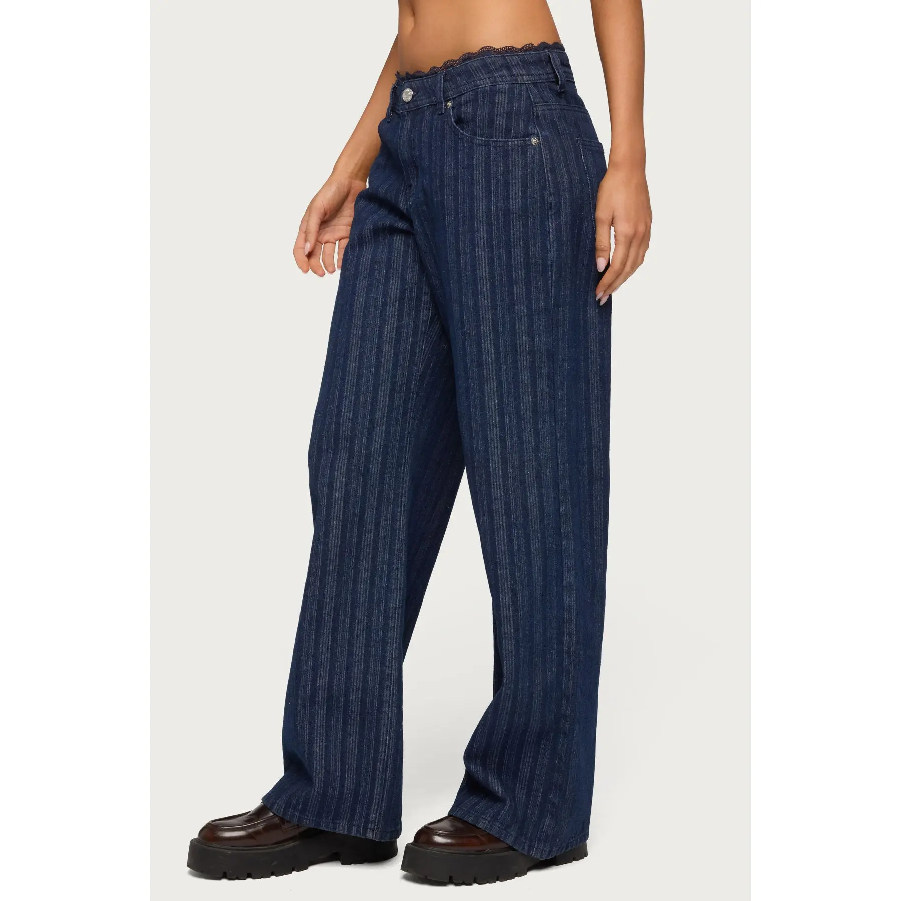 Lace Trim Striped Low Rise #baggy #jeans #tiktokshop #buynow #loveit